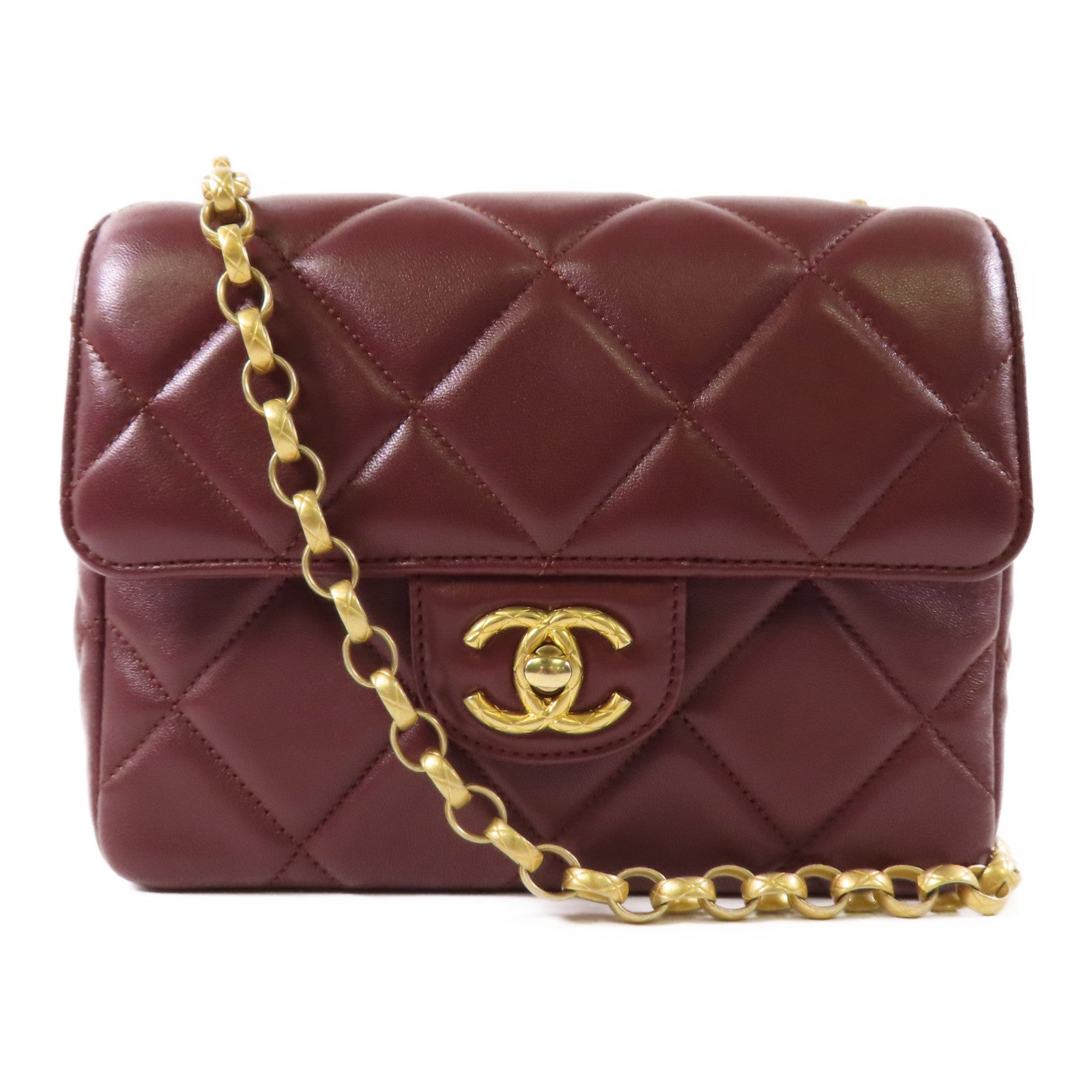 CHANEL 羊皮皮革Chain Shoulder金扣鏈帶肩背袋
