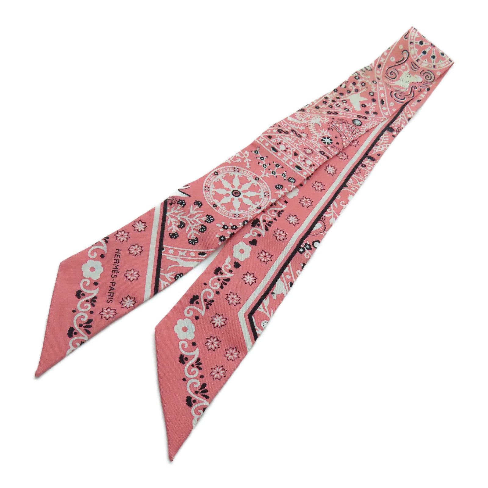 HERMES 絲質Twilly絲巾粉紅色