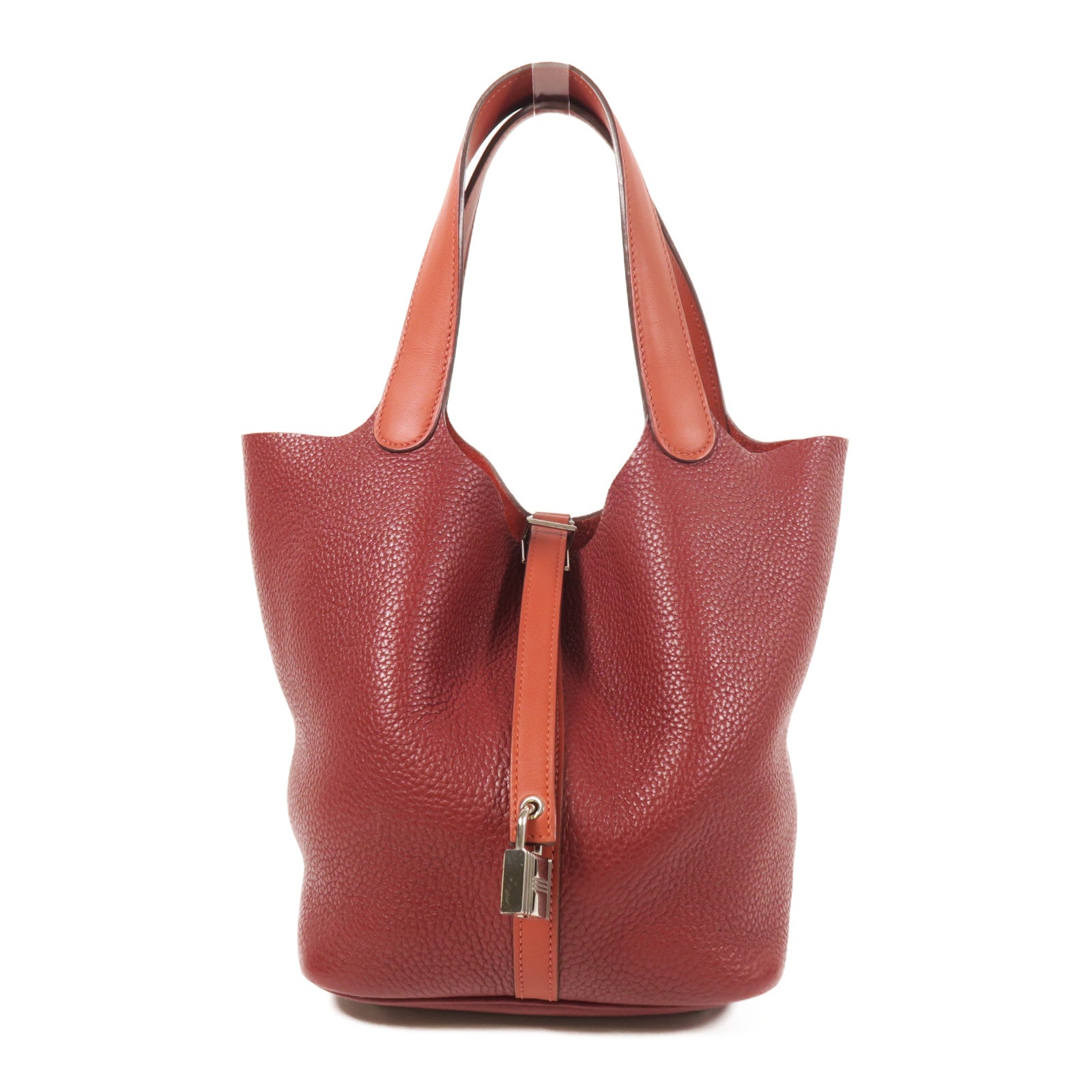 HERMES Clemence皮革Picotin MM銀扣手挽袋Rough/Brique