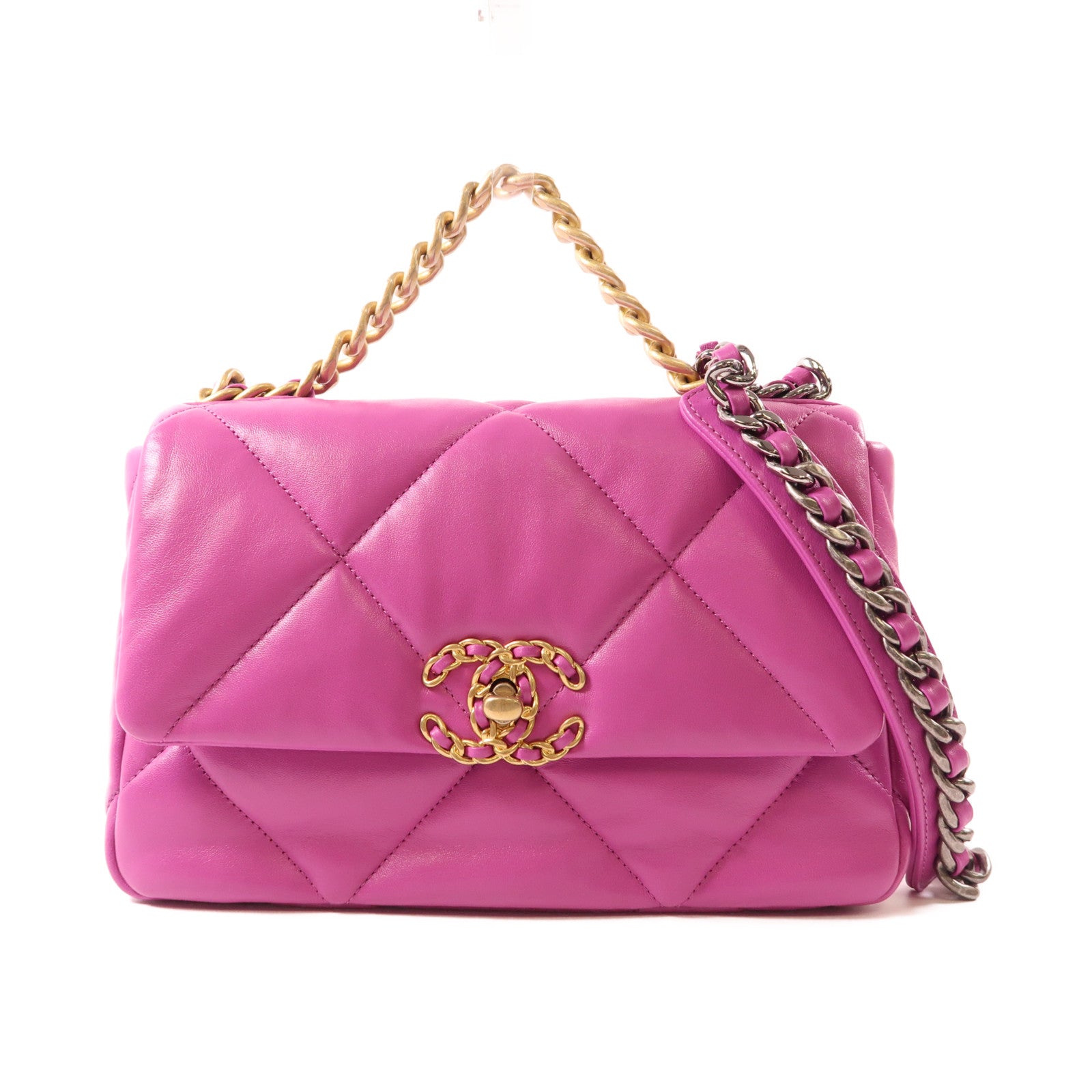 CHANEL 羊皮皮革C19鏈帶手挽肩背兩用袋