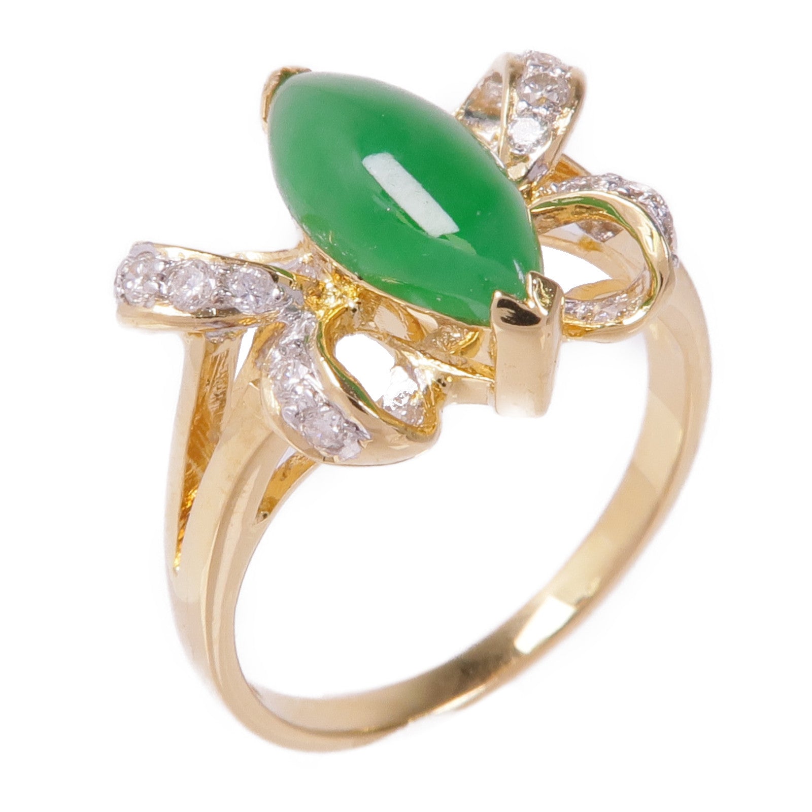 JEWELRY 18K黃金/白金Jade Diamond Ring翡翠/鑽石戒指US#5.5