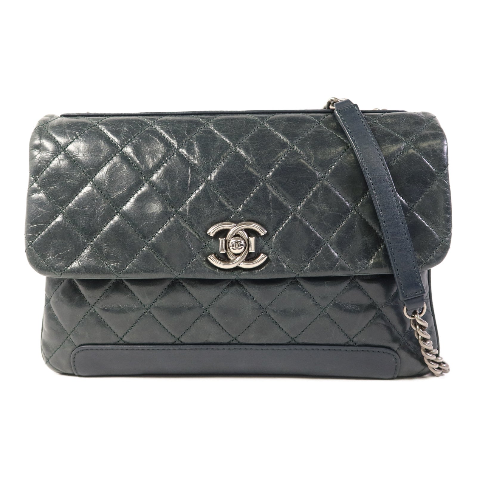 CHANEL 牛皮皮革Chain Shoulder Bag銀扣鏈帶肩背袋