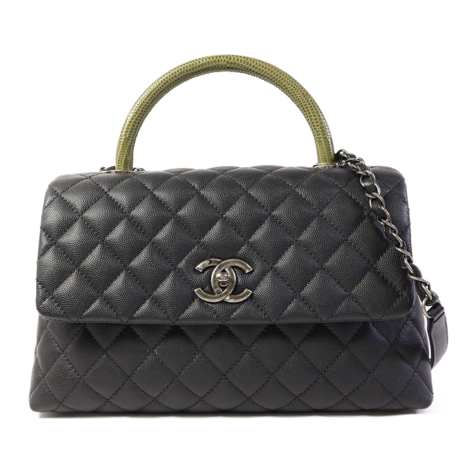 CHANEL 牛皮皮革/蜥蝪皮革Coco Handle Large手挽肩背兩用袋