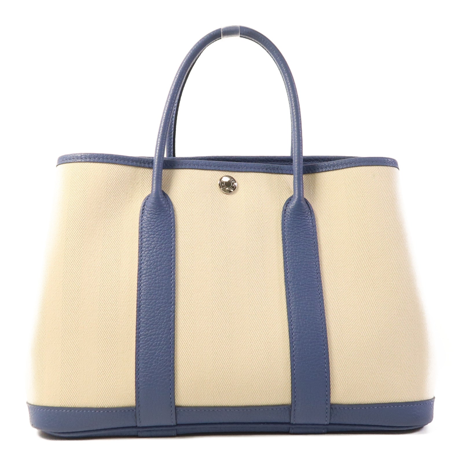 HERMES 帆布Garden Party TPM銀扣手挽袋Bleu Brighton