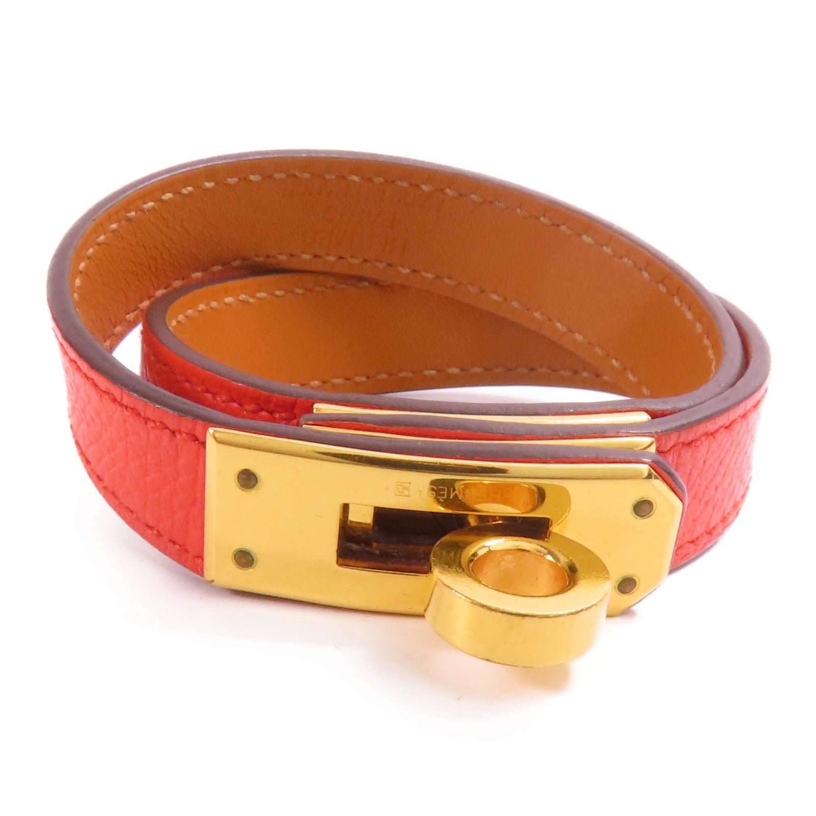 HERMES 皮革Kelly Double Tour金扣手鏈Red