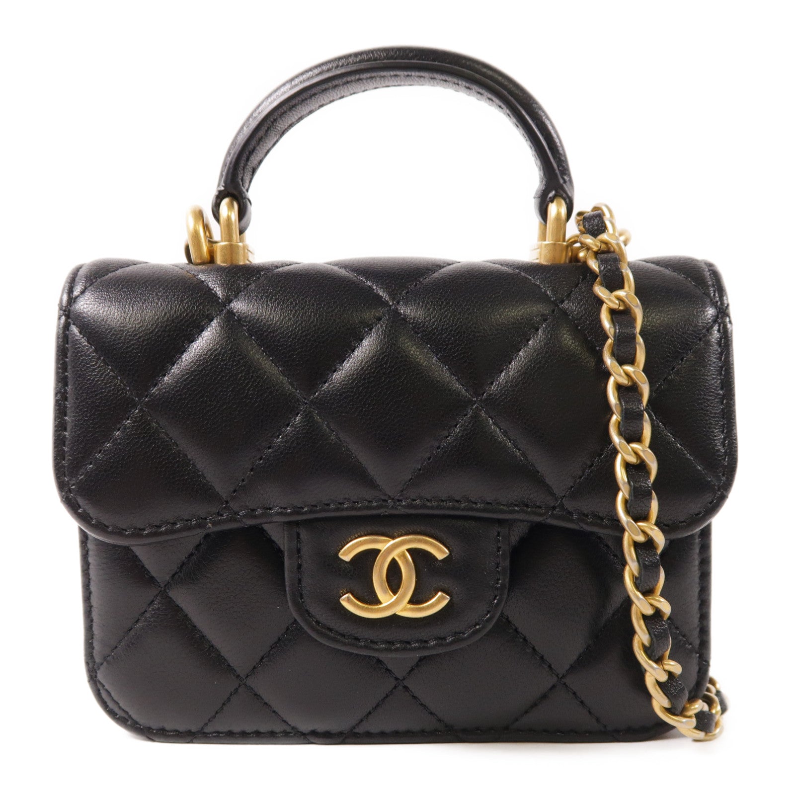 CHANEL 羊皮皮革Handle Mini Bag金扣鏈帶手挽肩背兩用袋