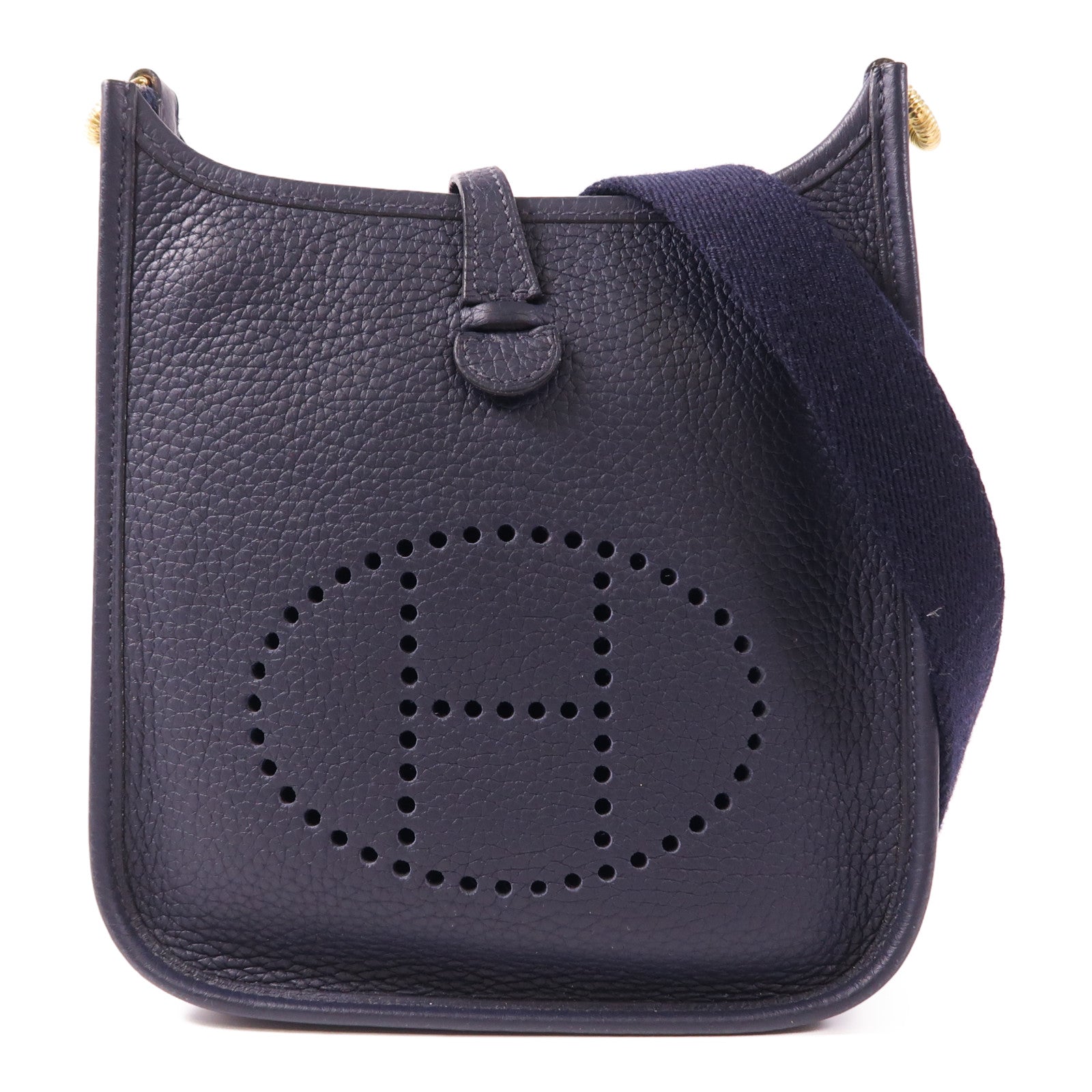 HERMES Evercolor皮革Evelyne TPM金扣肩背袋Bleu Nuit