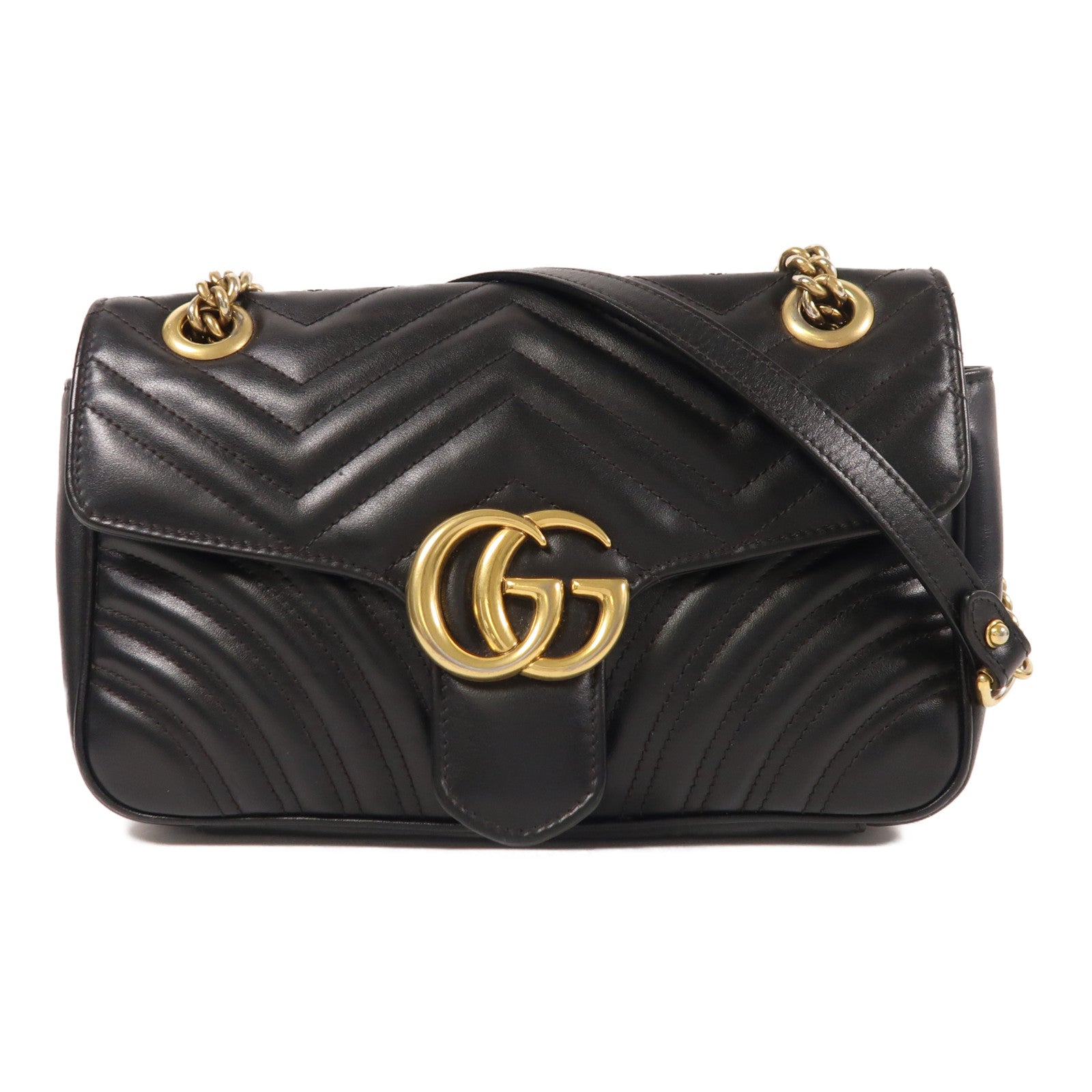 GUCCI 牛皮皮革GG Marmont金扣鏈帶肩背袋