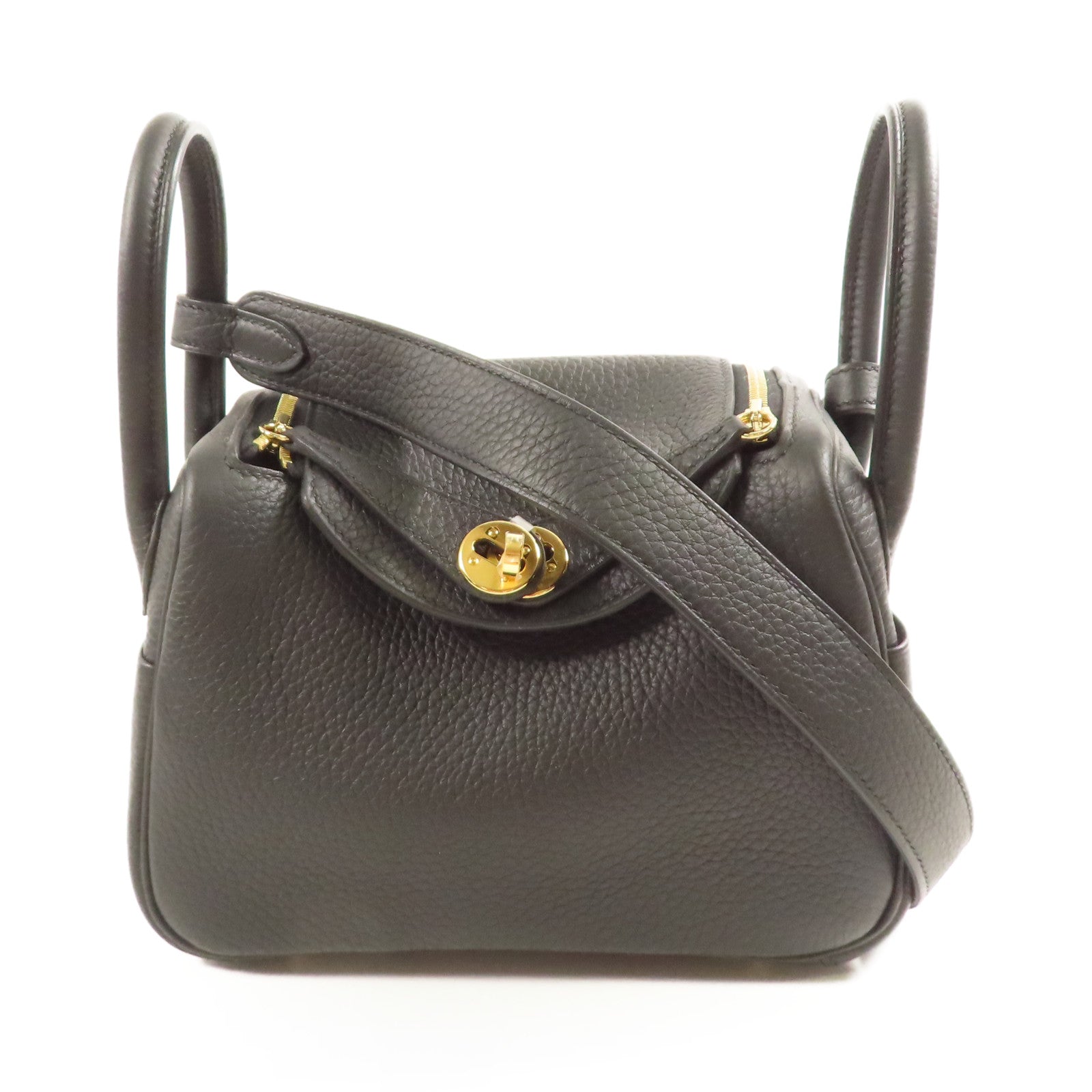 HERMES Clemence皮革Mini Lindy金扣手挽肩背兩用袋Noir