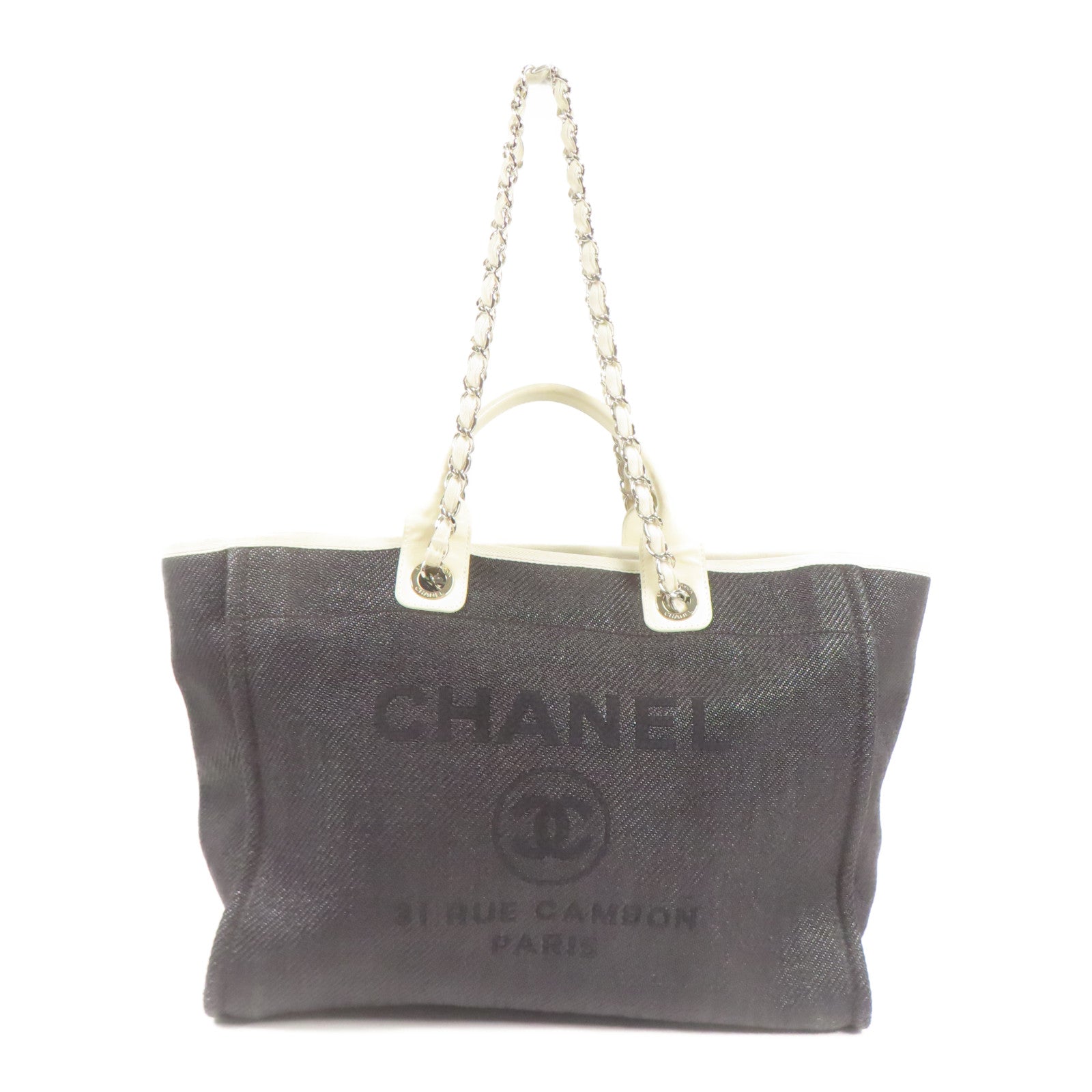 CHANEL 帆布Tote Bag銀扣肩背袋