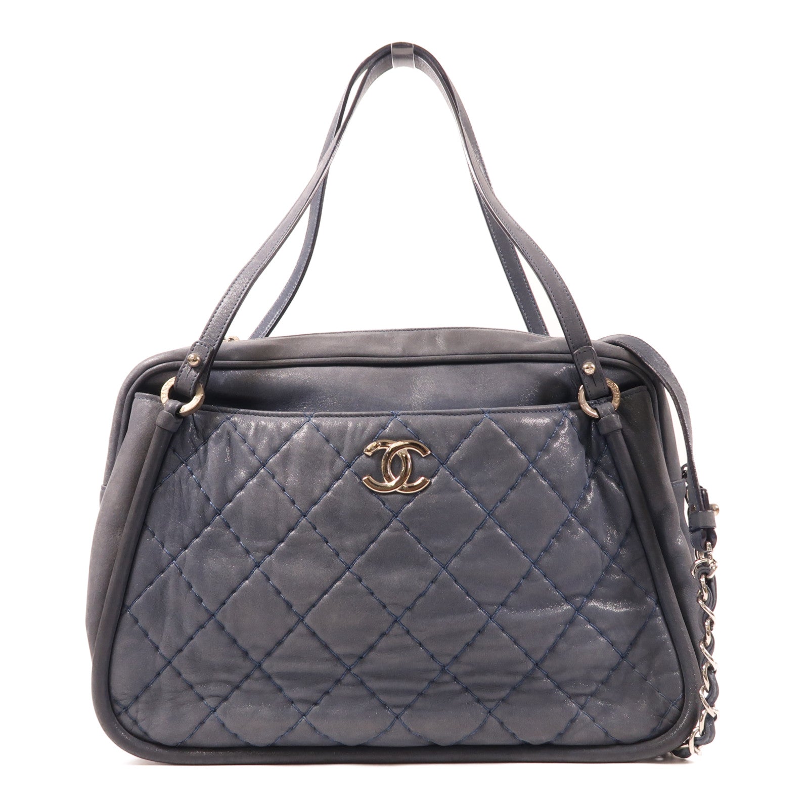 CHANEL 牛皮皮革Chain Shoulder銀扣手挽肩背兩用袋