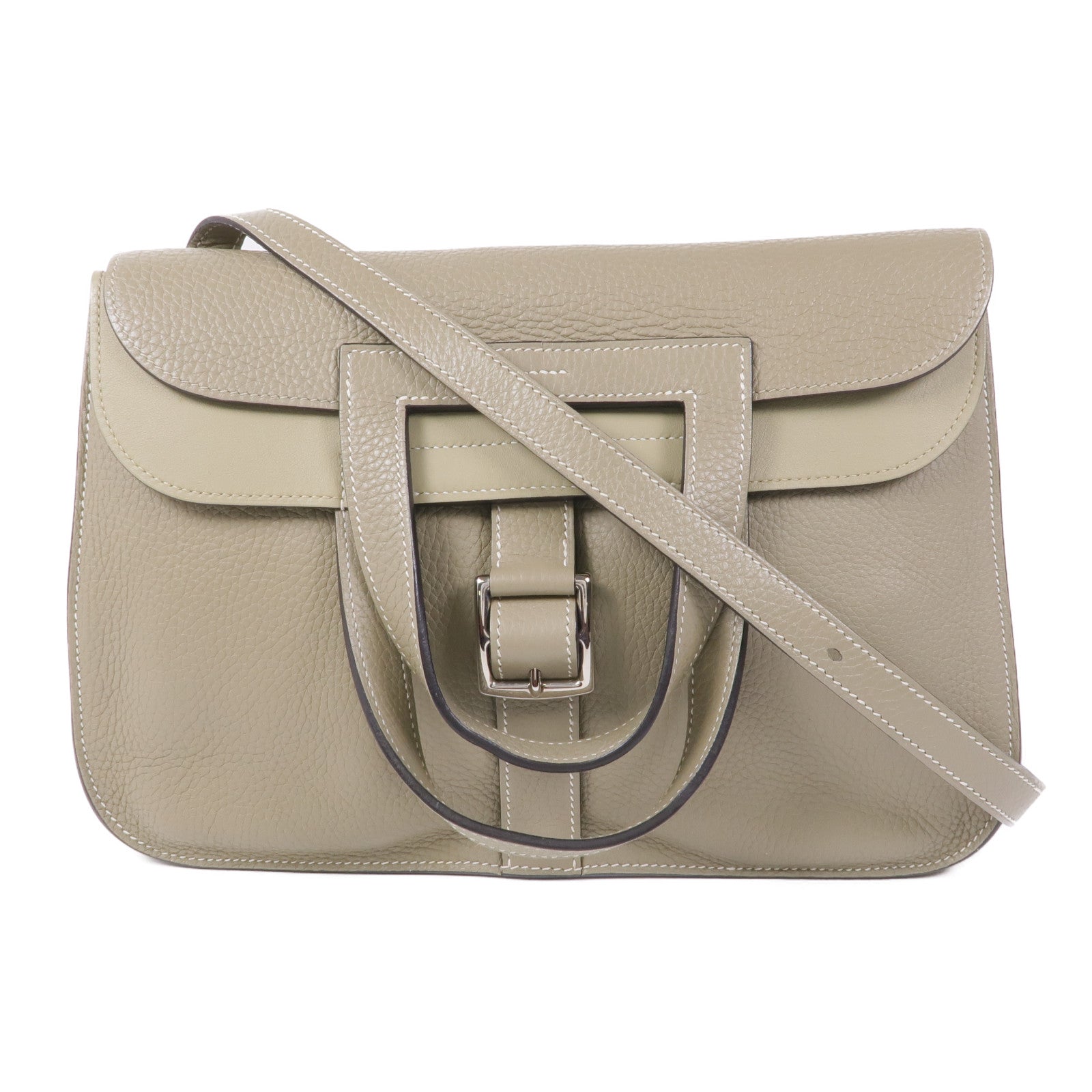 HERMES Clemence皮革Halzan 31銀扣手挽肩背兩用袋Sauge