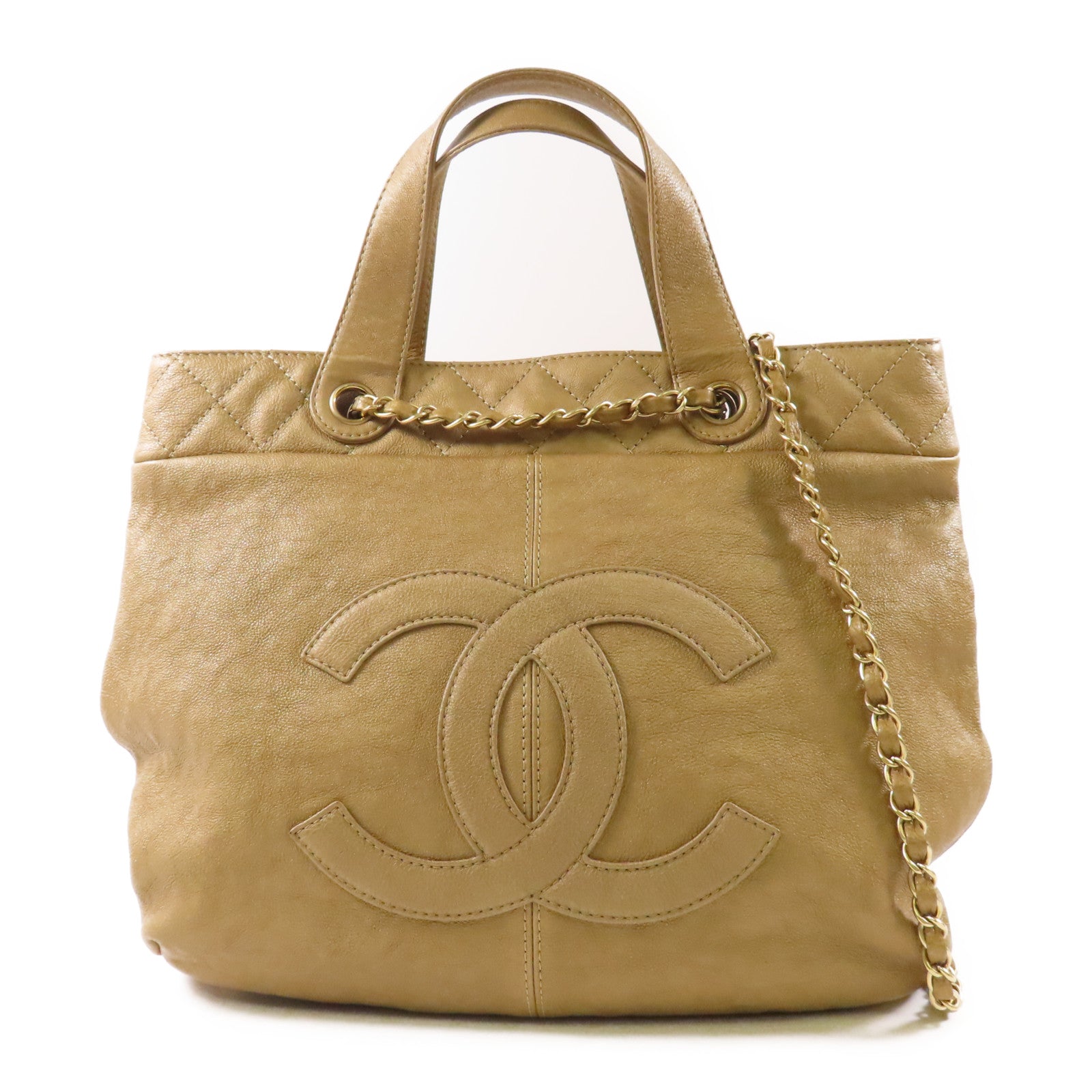 CHANEL 牛皮皮革Chain Shoulder金扣鏈帶手挽肩背兩用袋