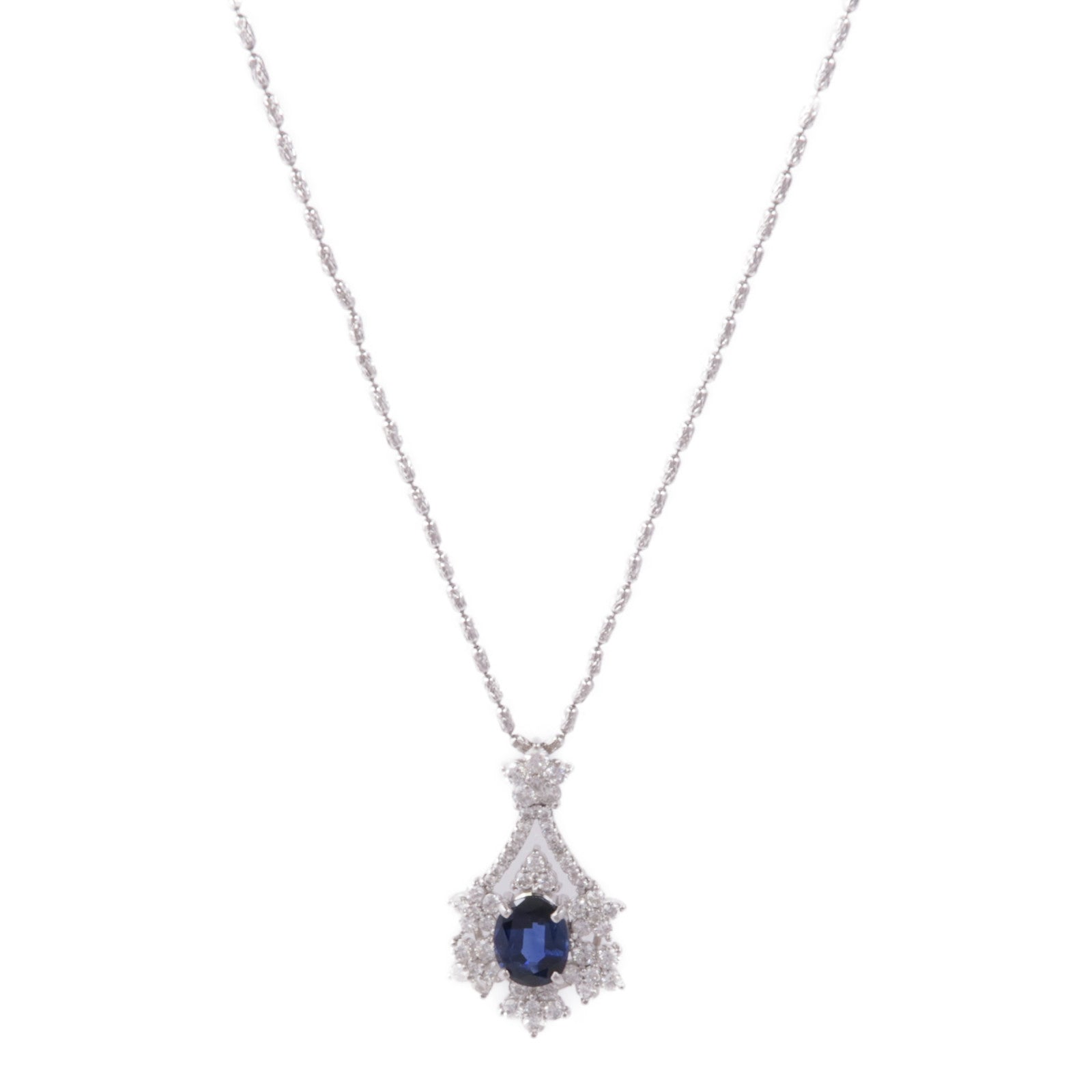 JEWELRY 18K白金/PT900鉑金Sapphire/Diamond Necklace藍寶石/鑽石項鍊