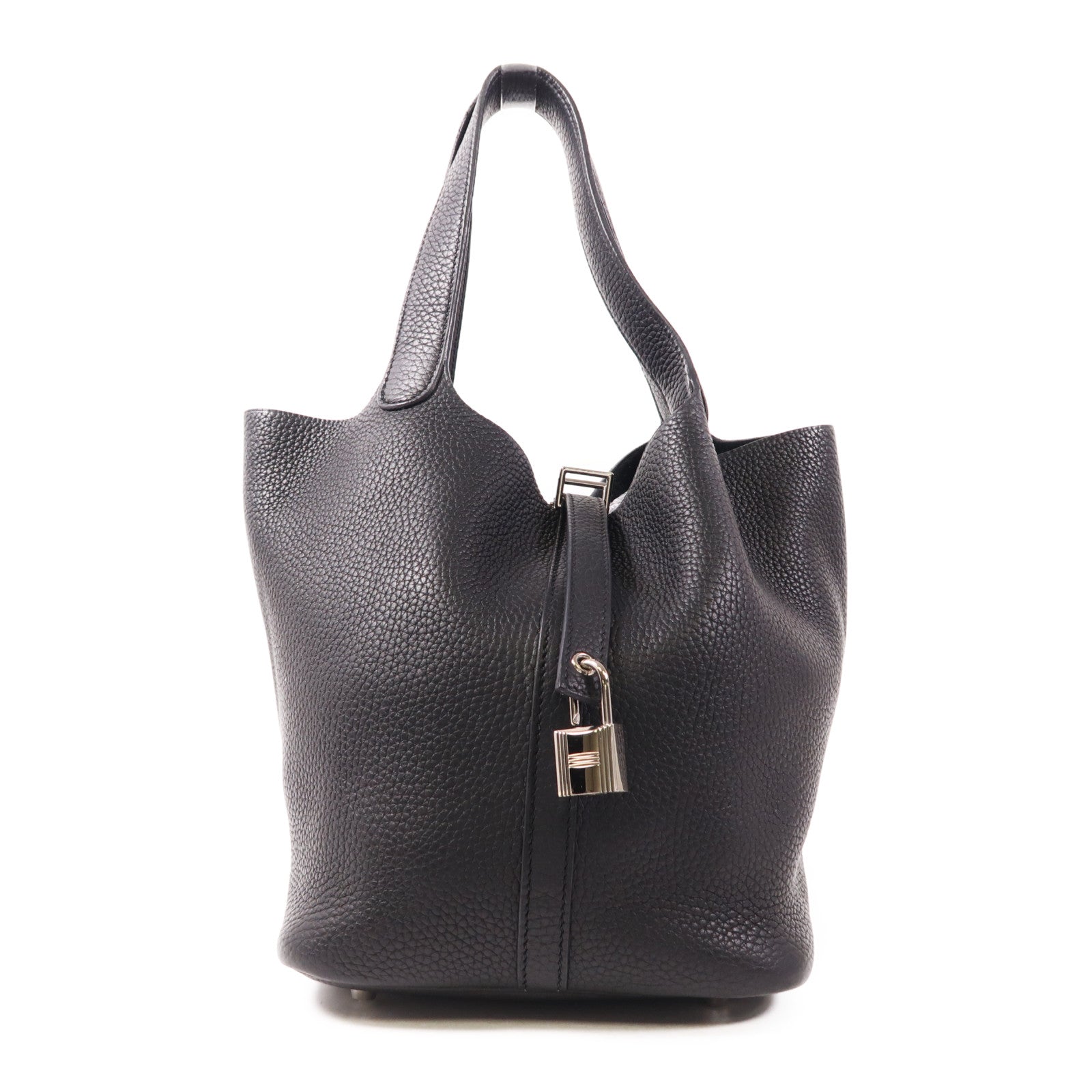 HERMES Clemence皮革Picotin MM銀扣手挽袋Noir