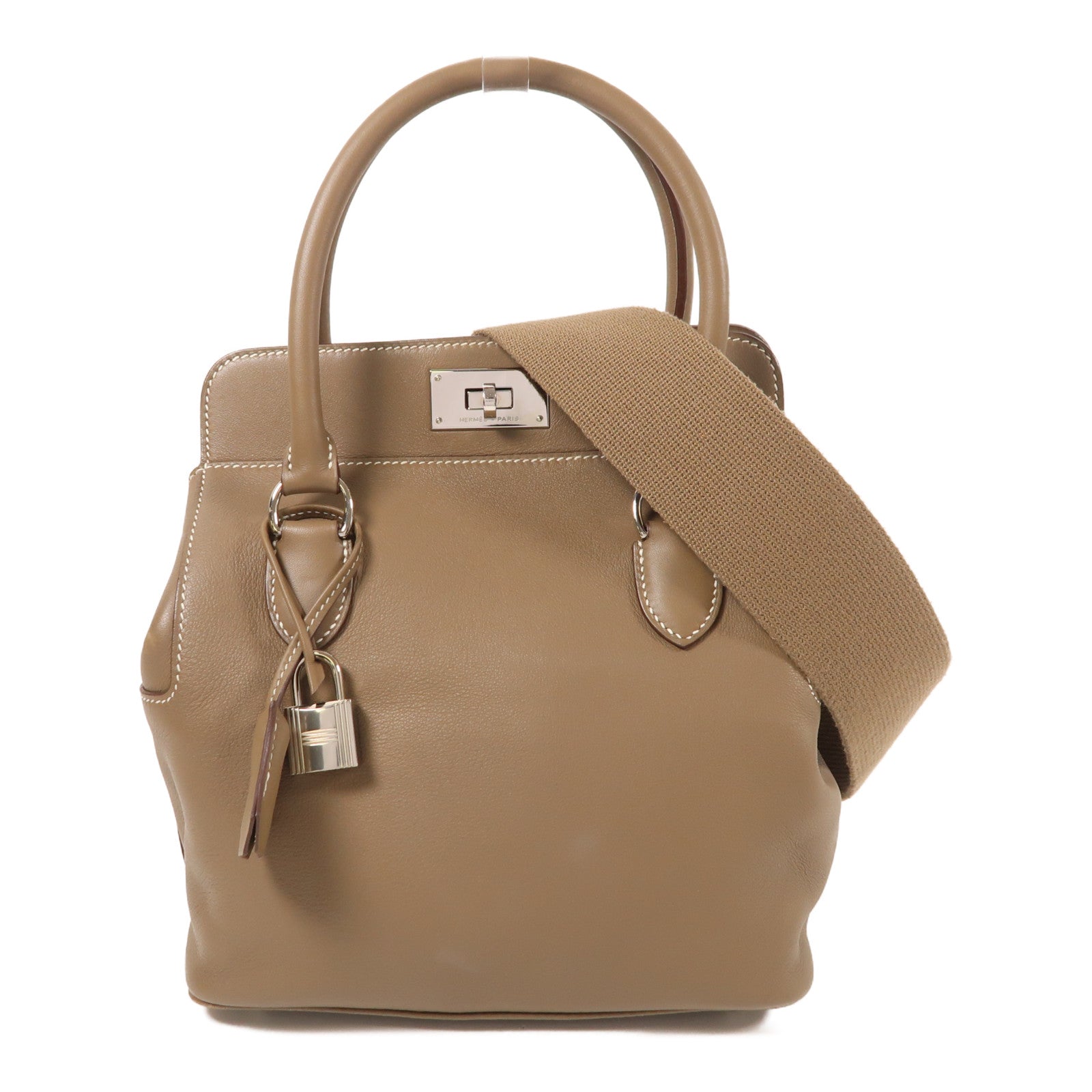 HERMES Swift皮革Tool Box 20銀扣手挽肩背兩用袋Etoupe