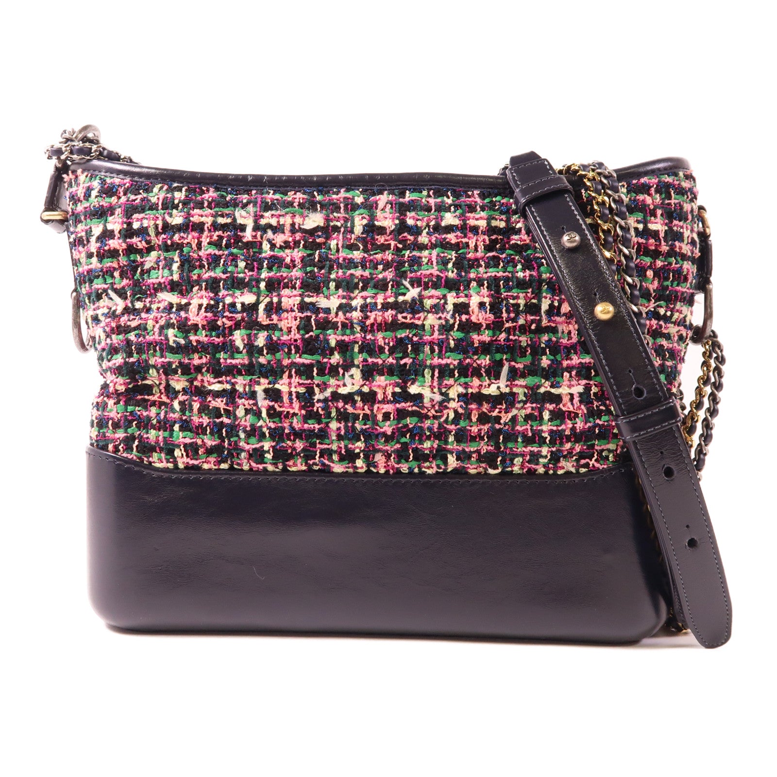 CHANEL 粗花呢/皮革Gabrielle Medium鏈帶肩背袋