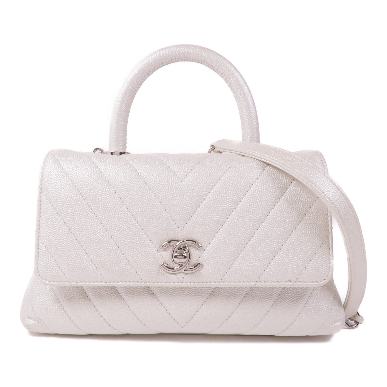 CHANEL 牛皮皮革Coco Handle銀扣鏈帶手挽肩背兩用袋