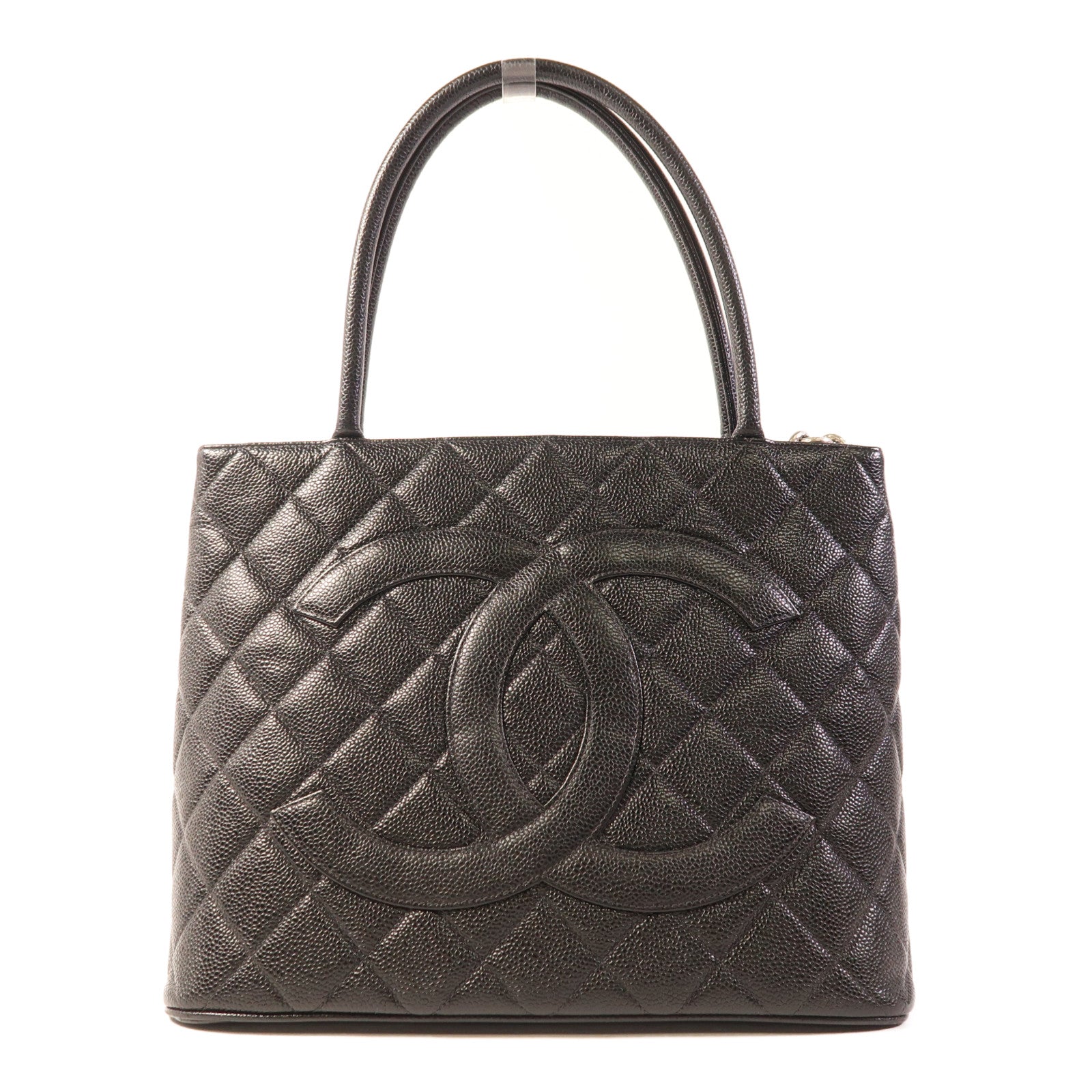 CHANEL 牛皮皮革Tote Bag銀扣肩背袋
