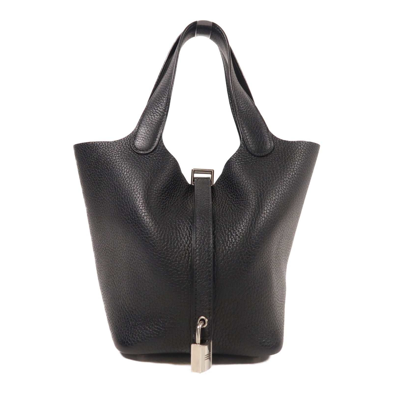 HERMES Clemence皮革Picotin PM銀扣手挽袋Noir
