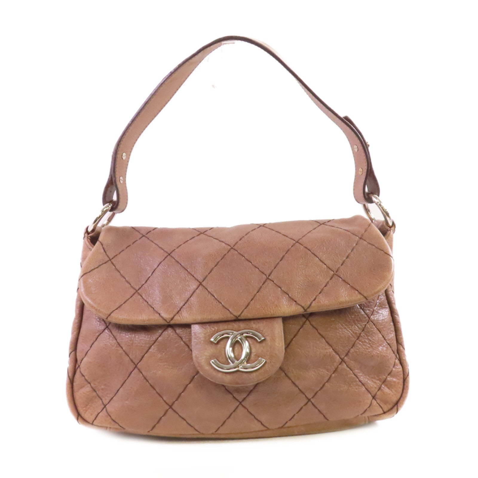 CHANEL 牛皮皮革Shoulder Bag銀扣啡色