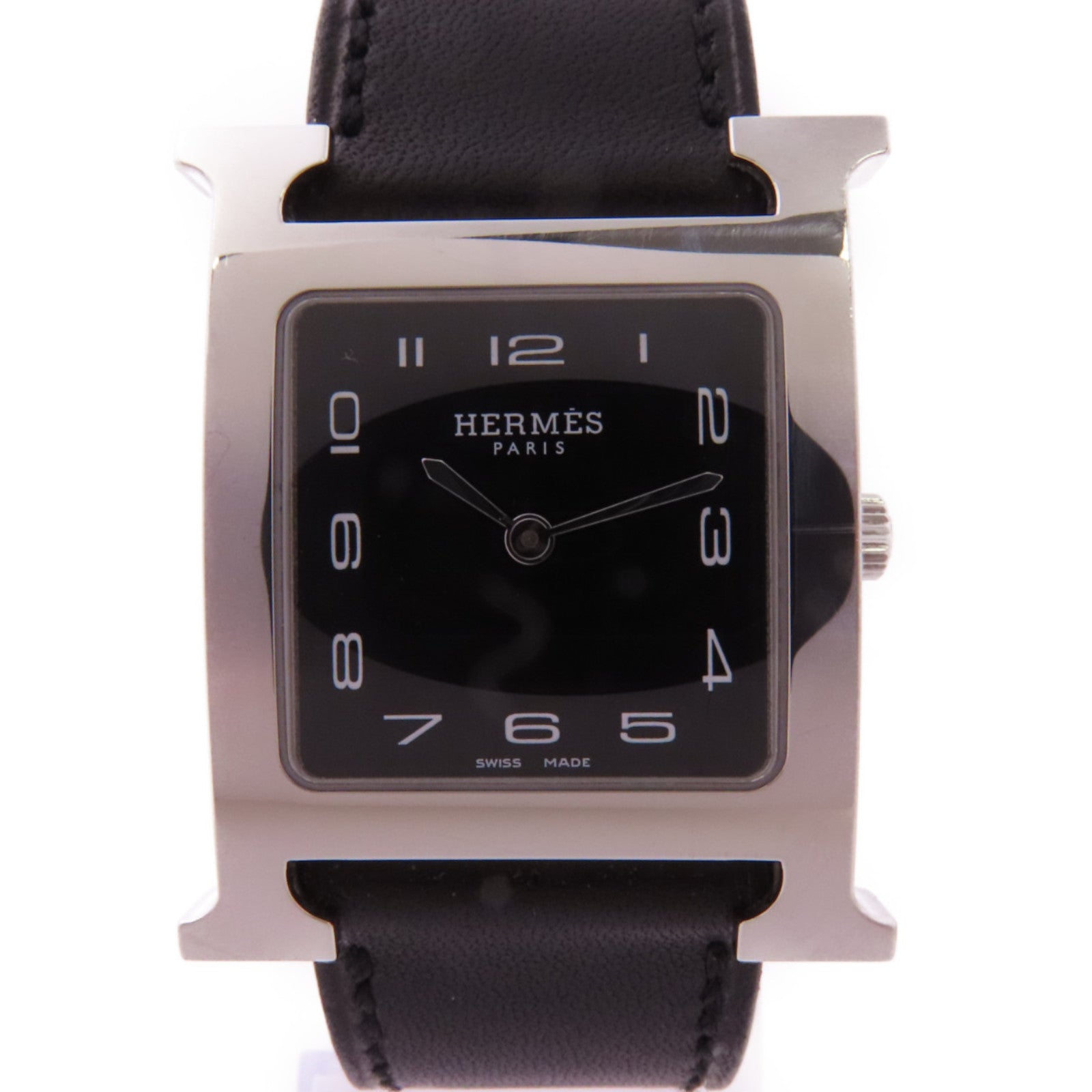 HERMES Heure H不鏽鋼/皮革手錶石英機芯黑色