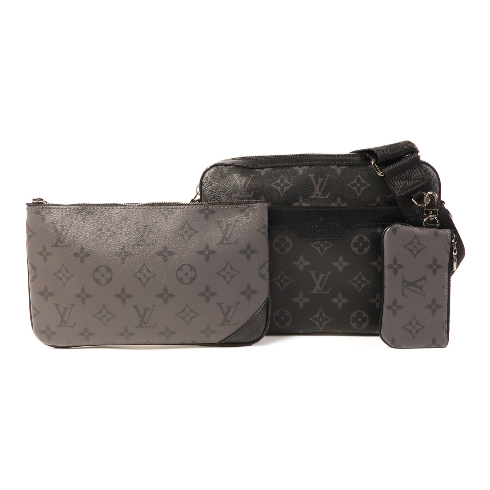 LOUIS VUITTON Monogram Eclipse Reverse Trio Messenger銀扣肩背袋灰色