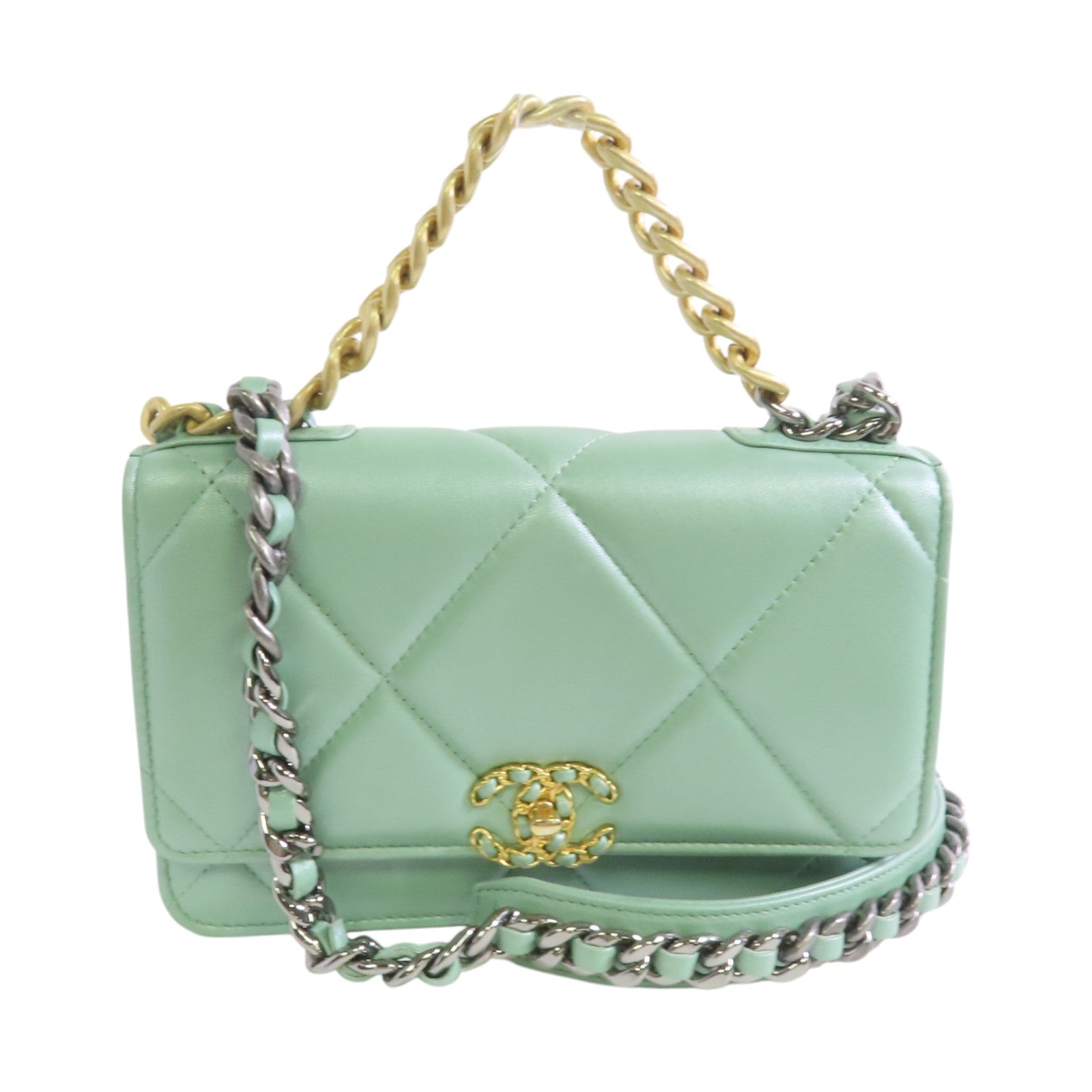 CHANEL 羊皮皮革Chanel 19 WOC金扣鏈帶手挽肩背兩用袋
