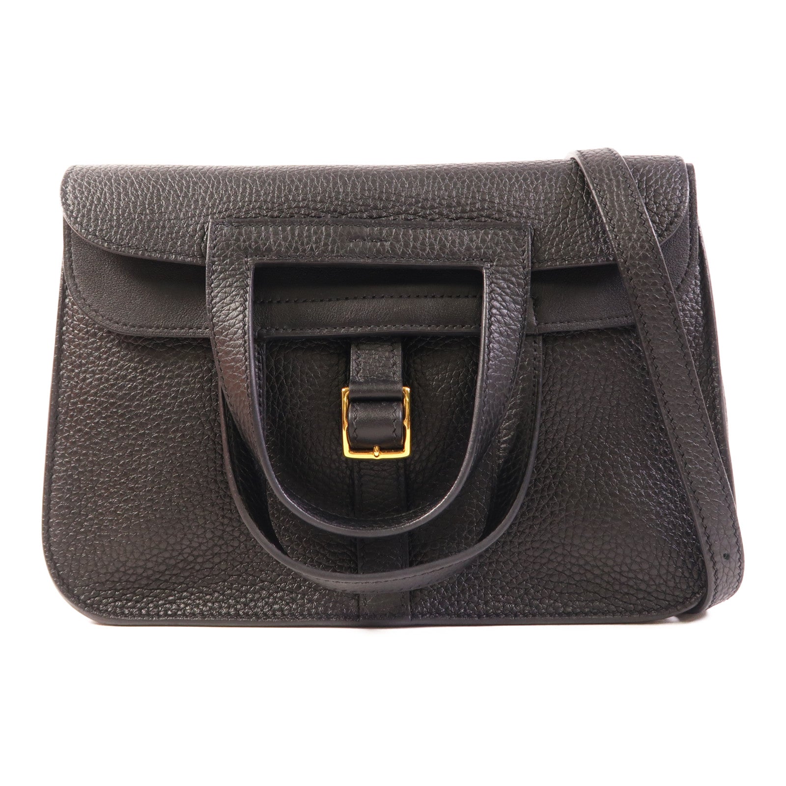 HERMES Clemence皮革Halzan 25金扣手挽肩背兩用袋Noir