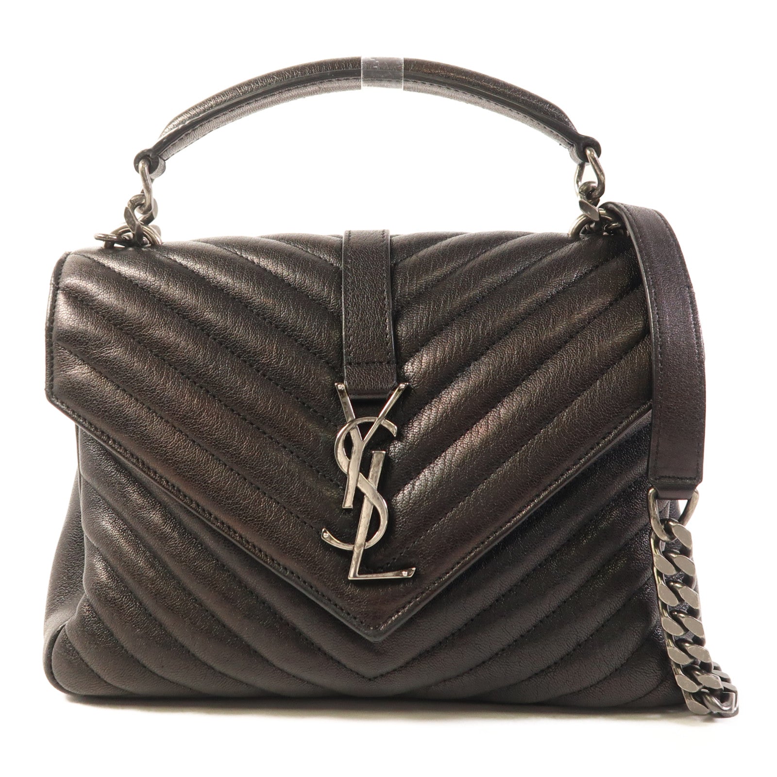 YVES SAINT LAURENT 皮革College Medium銀扣手挽肩背兩用袋