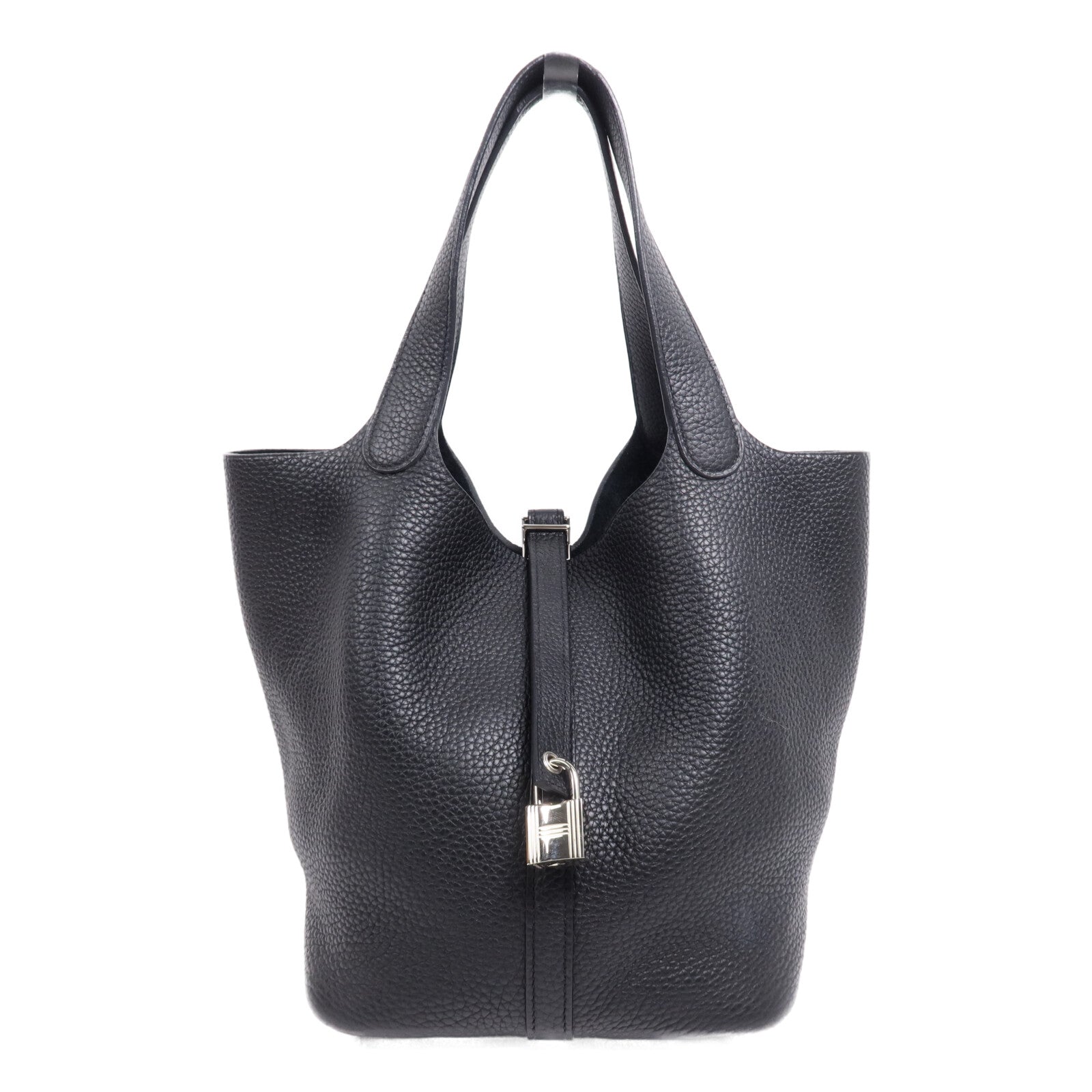 HERMES Clemence皮革Picotin MM銀扣手挽袋Noir