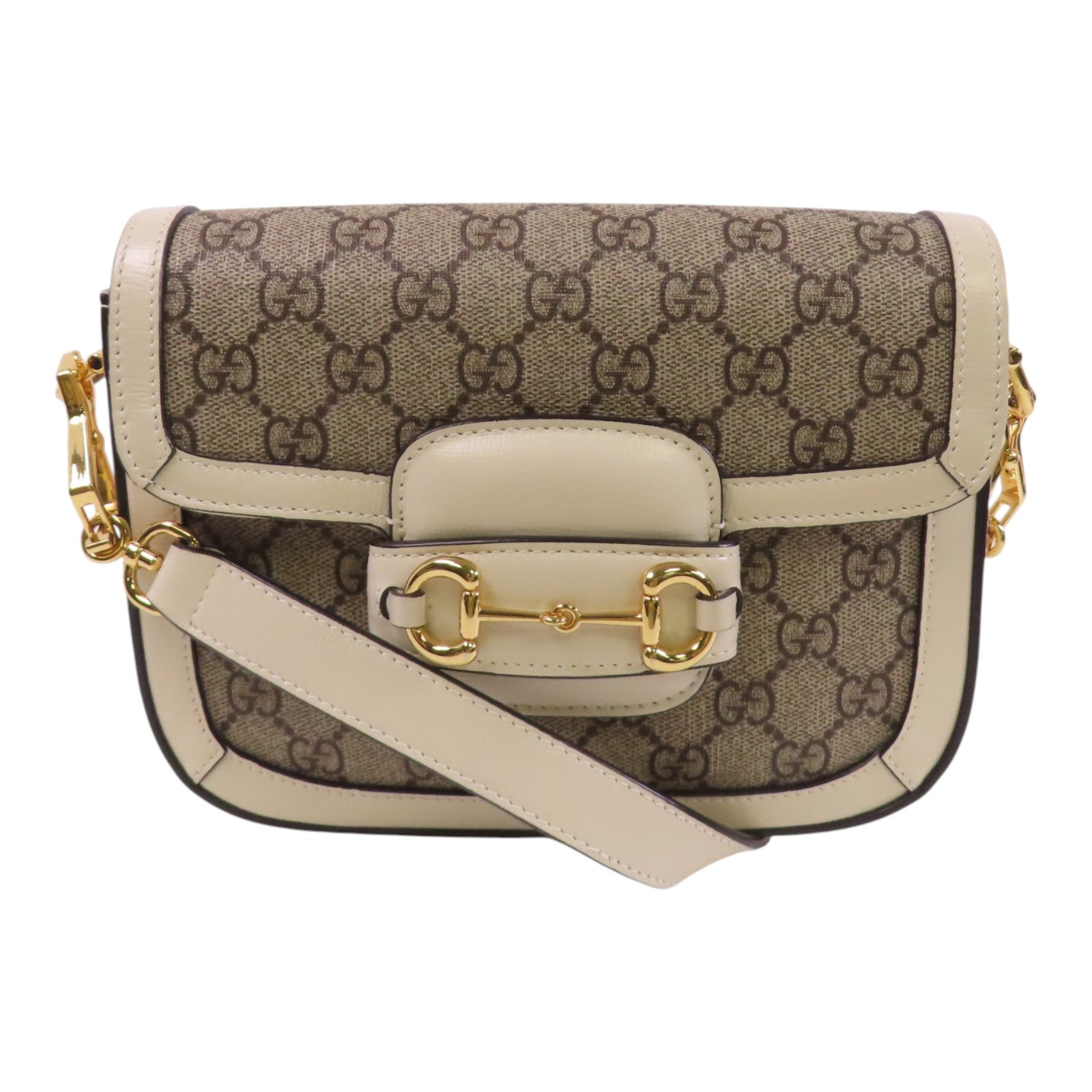GUCCI 塗層帆布/牛皮皮革Horsebit 1955金扣肩背袋