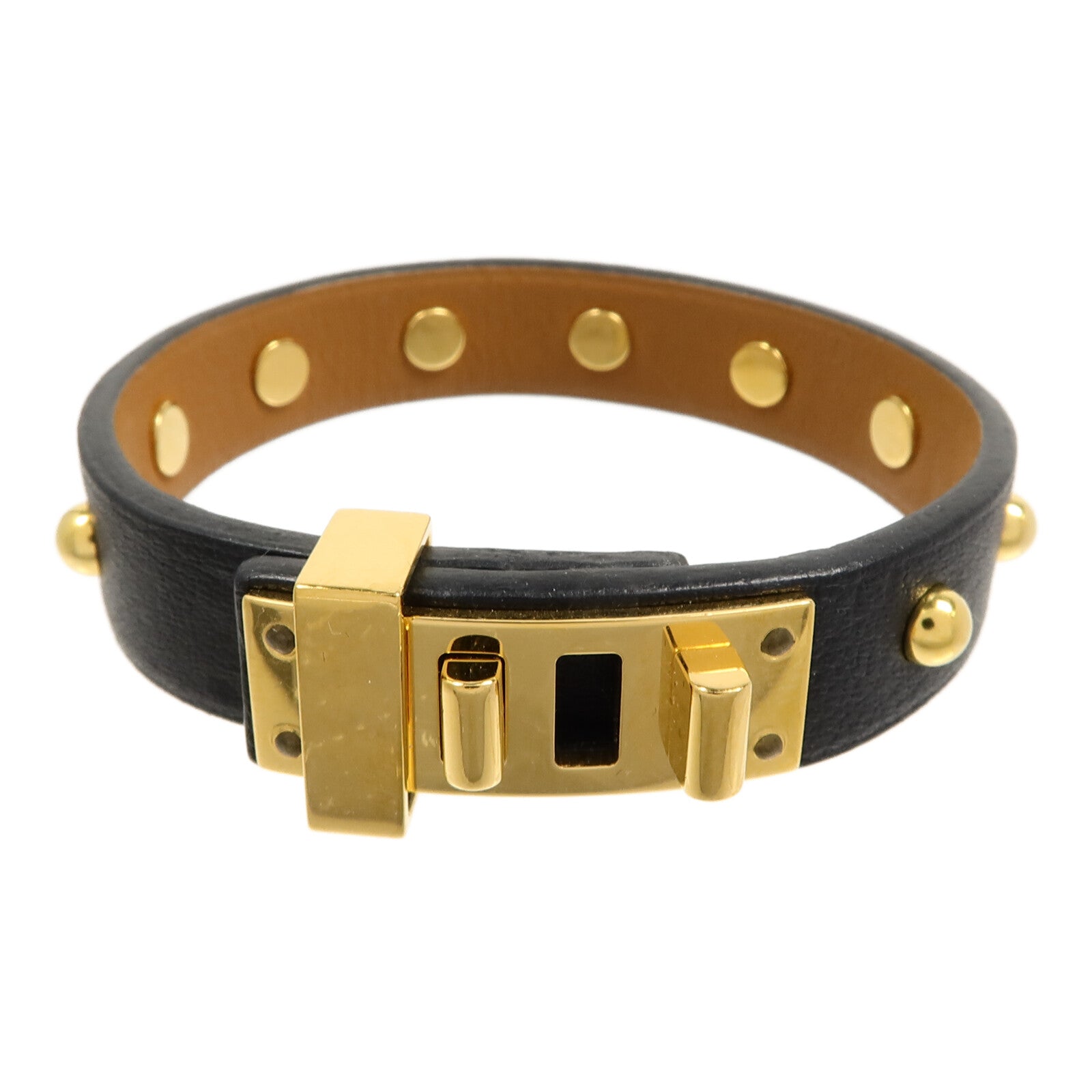 HERMES 金屬/Swift皮革Mini Dog Clous Ronds Bracelet手鐲89 Noir
