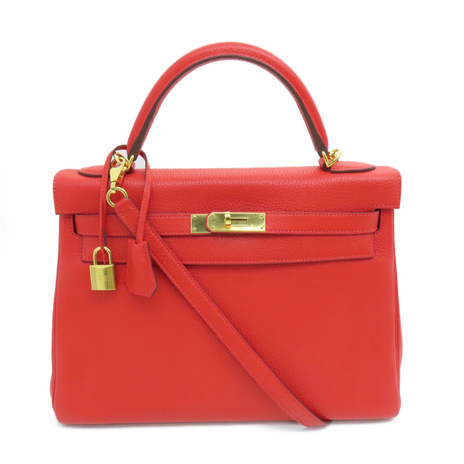 HERMES Clemence皮革Kelly 32金扣手挽肩背两用袋红色Rouge Tomate