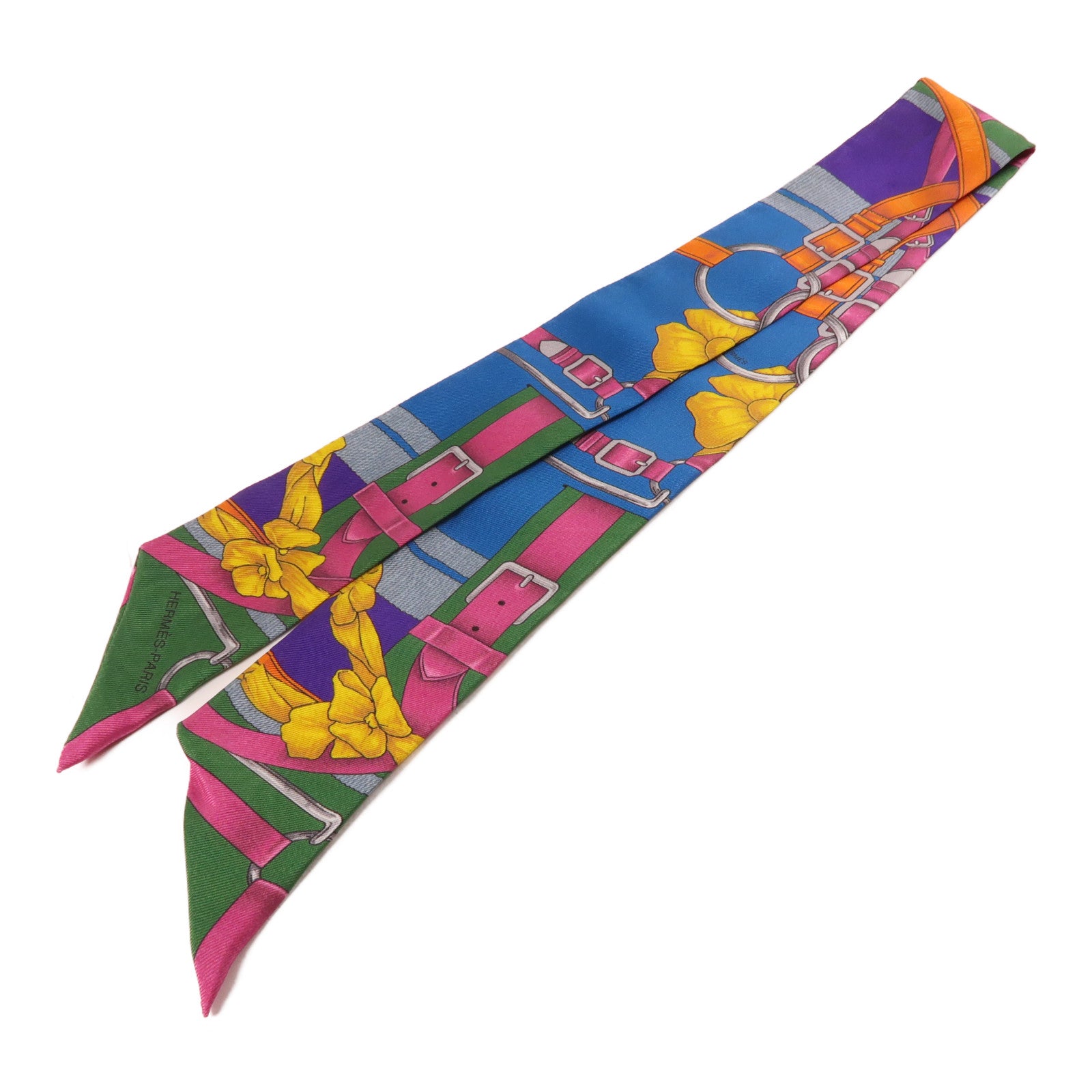 HERMES 絲質Twilly絲巾藍色/紫色