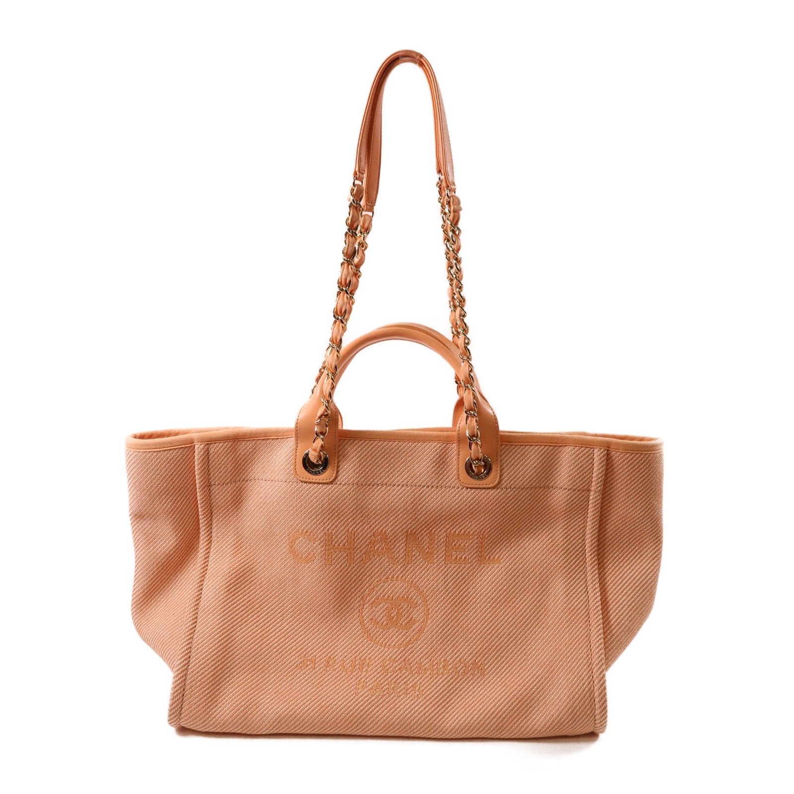 CHANEL 帆布Deauville金扣手挽肩背兩用袋