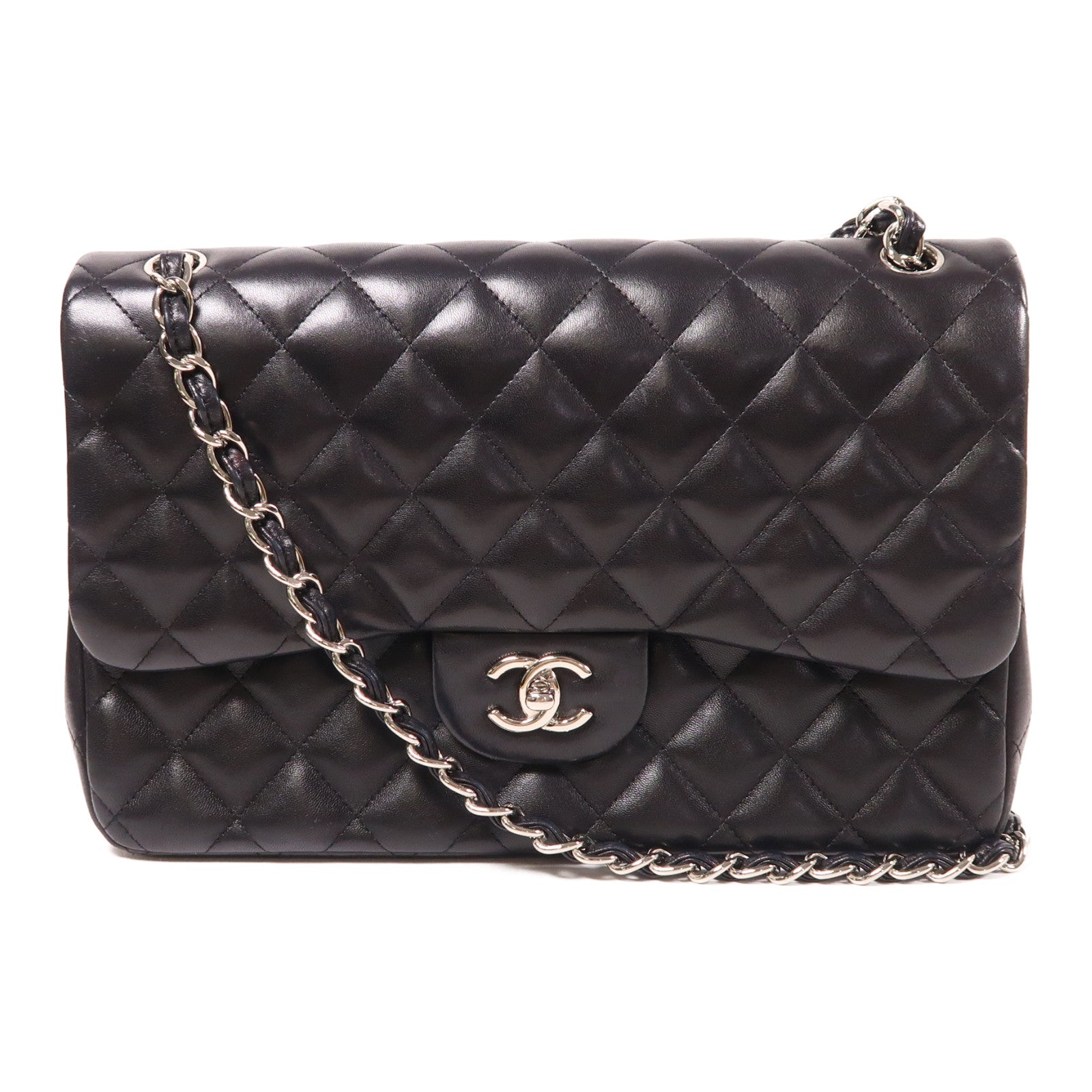 CHANEL 羊皮皮革Large Classic銀扣鏈帶肩背袋