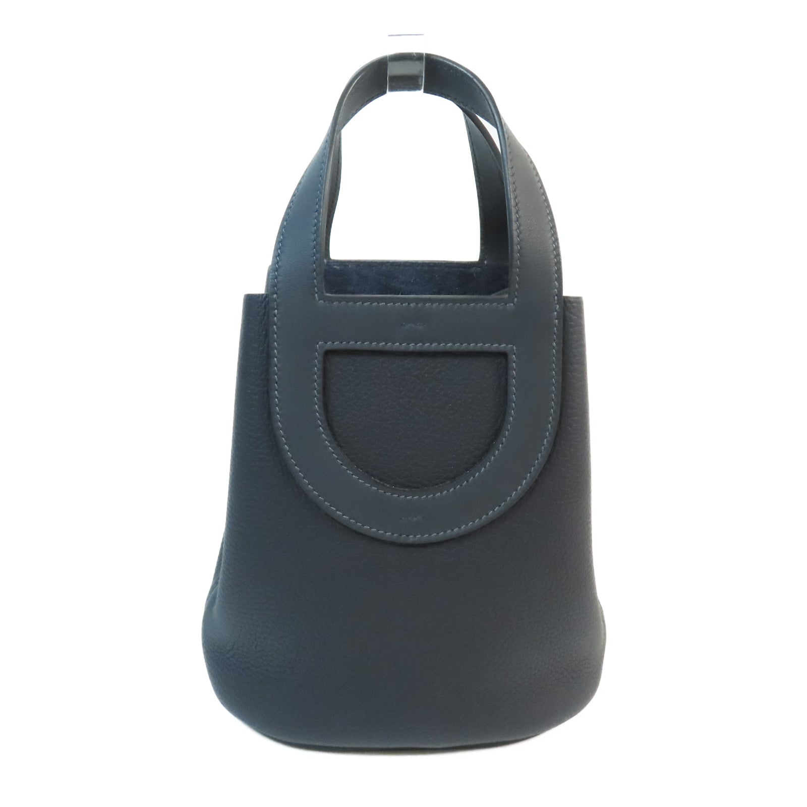 HERMES Clemence皮革In The Loop 18金扣手挽袋Bleu Nuit