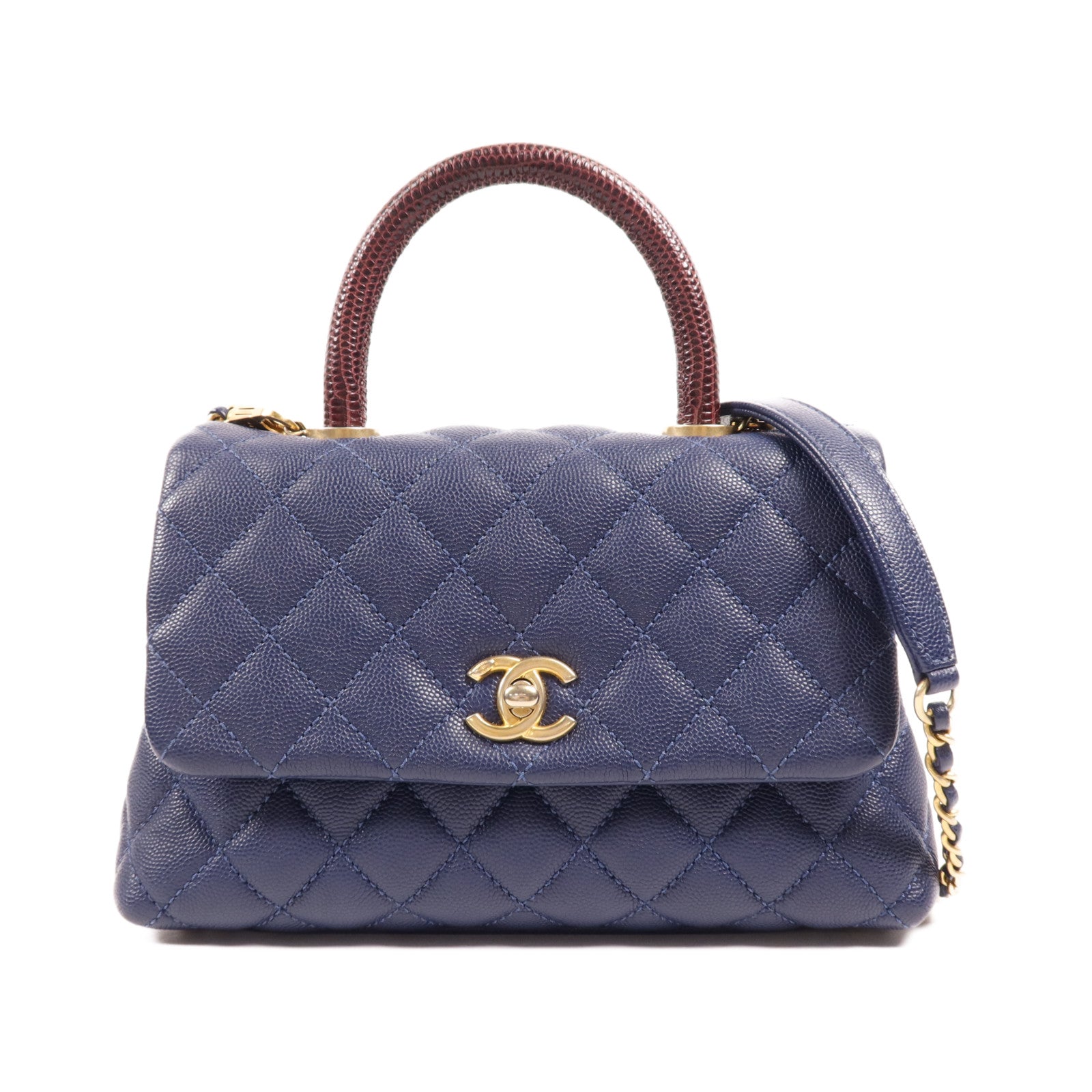 CHANEL 牛皮皮革/蜥蝪皮革Coco Handle Small金扣手挽肩背兩用袋