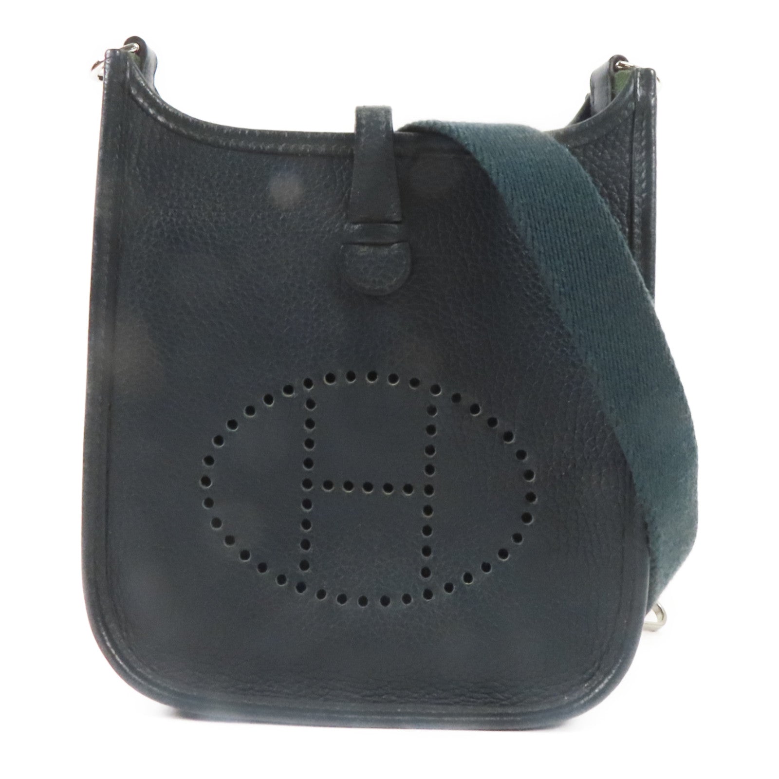 HERMES Clemence皮革Evelyne TPM銀扣肩背袋博斯普魯斯綠色