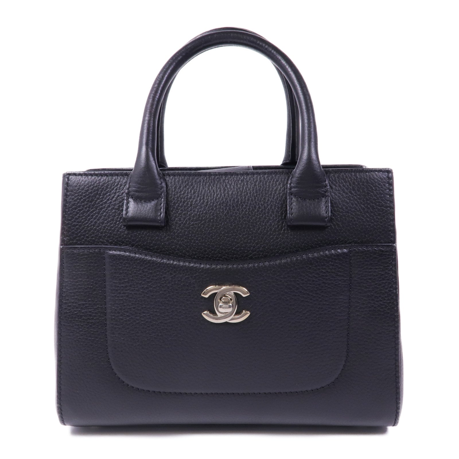 CHANEL 牛皮皮革Handbag銀扣手挽袋