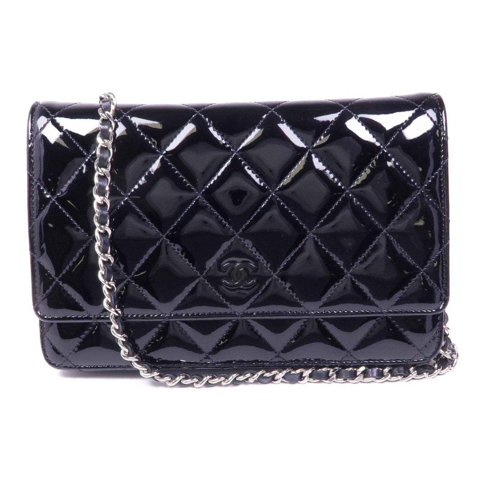 CHANEL 漆皮皮革Wallet On Chain銀扣鏈帶肩背袋