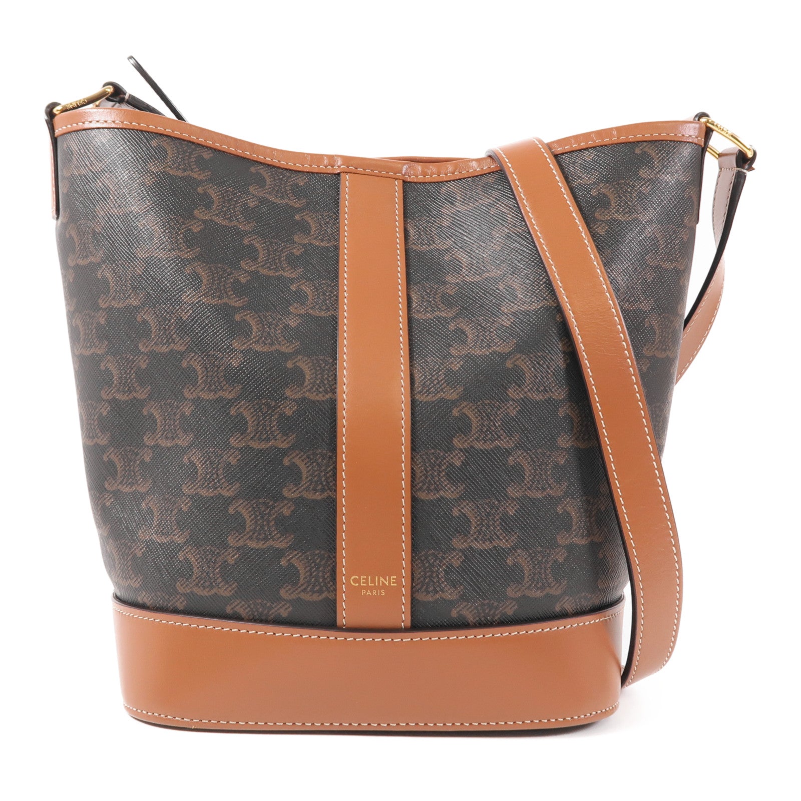 CELINE 塗層帆布Triomphe Bucket金扣肩背袋