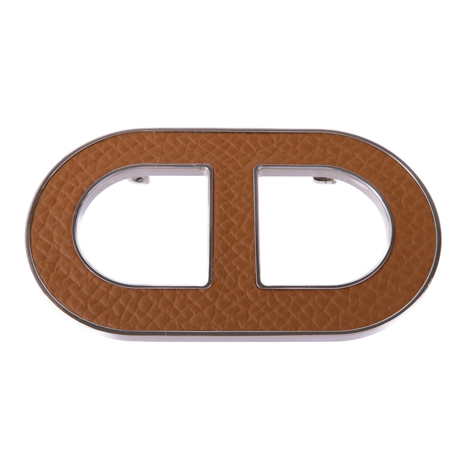HERMES Epsom皮革/金屬Chaine d'Ancre Brooch胸針Gold
