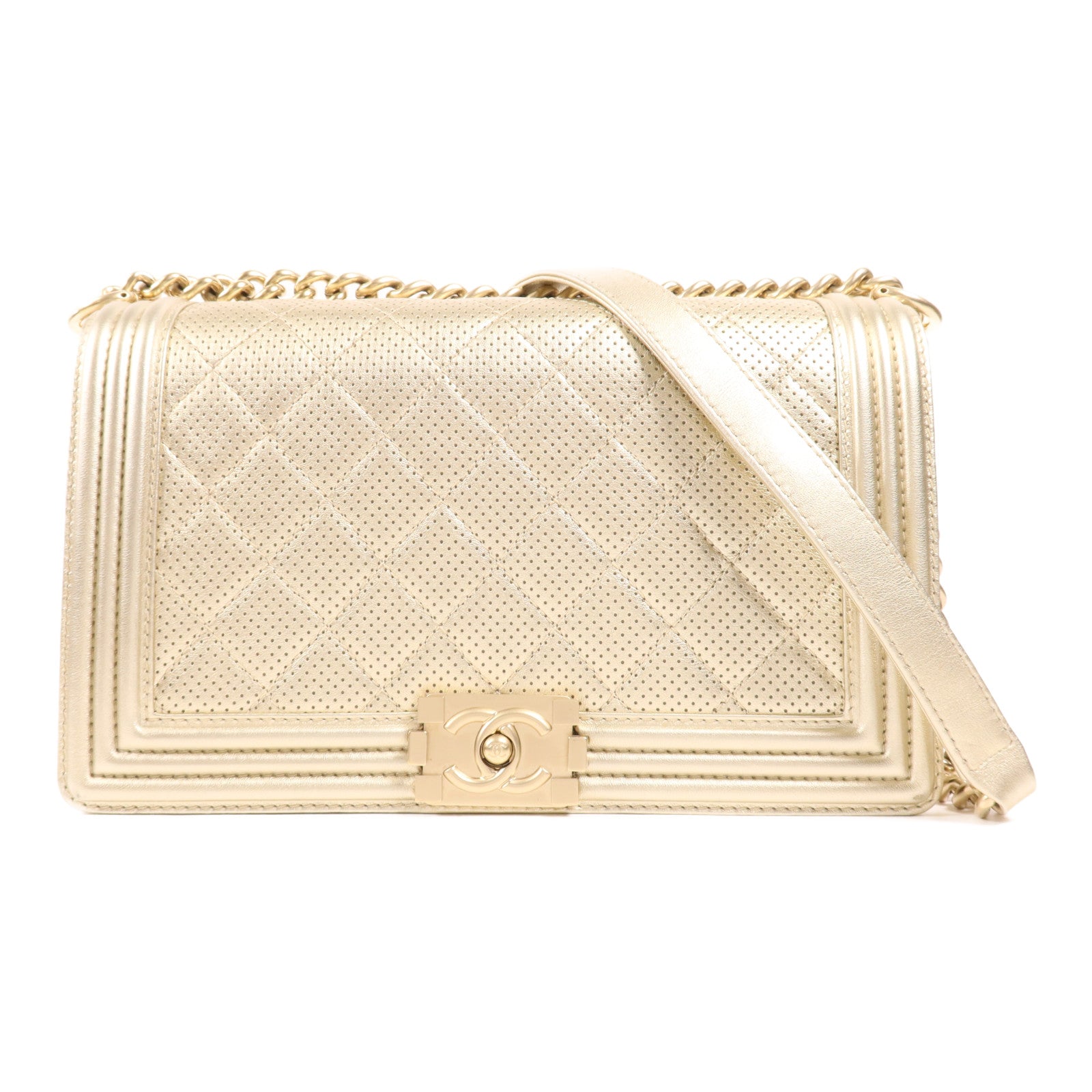 CHANEL 牛皮皮革Boy 28金扣鏈帶肩背袋