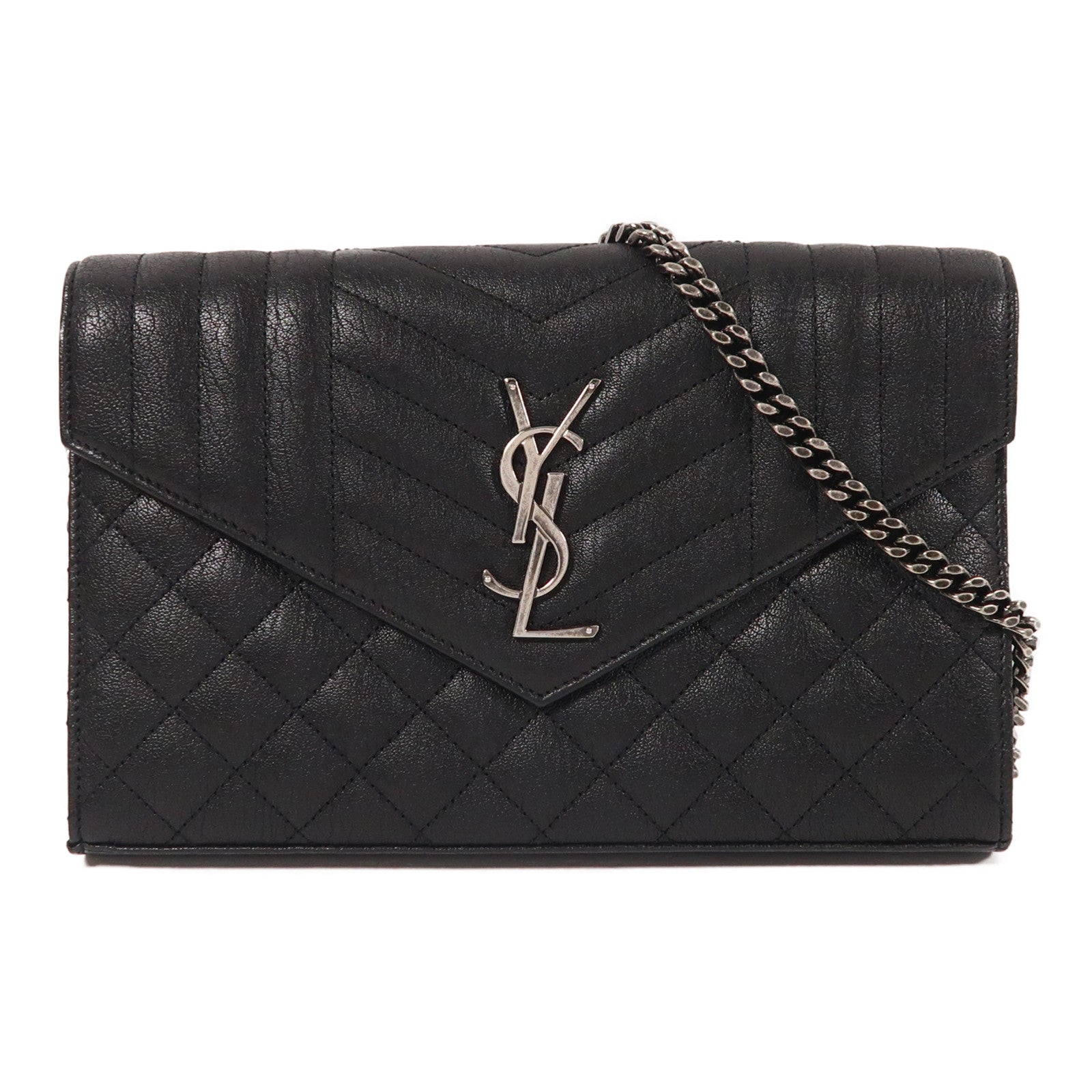 YVES SAINT LAURENT 牛皮皮革Chain Shoulder銀扣鏈帶肩背袋