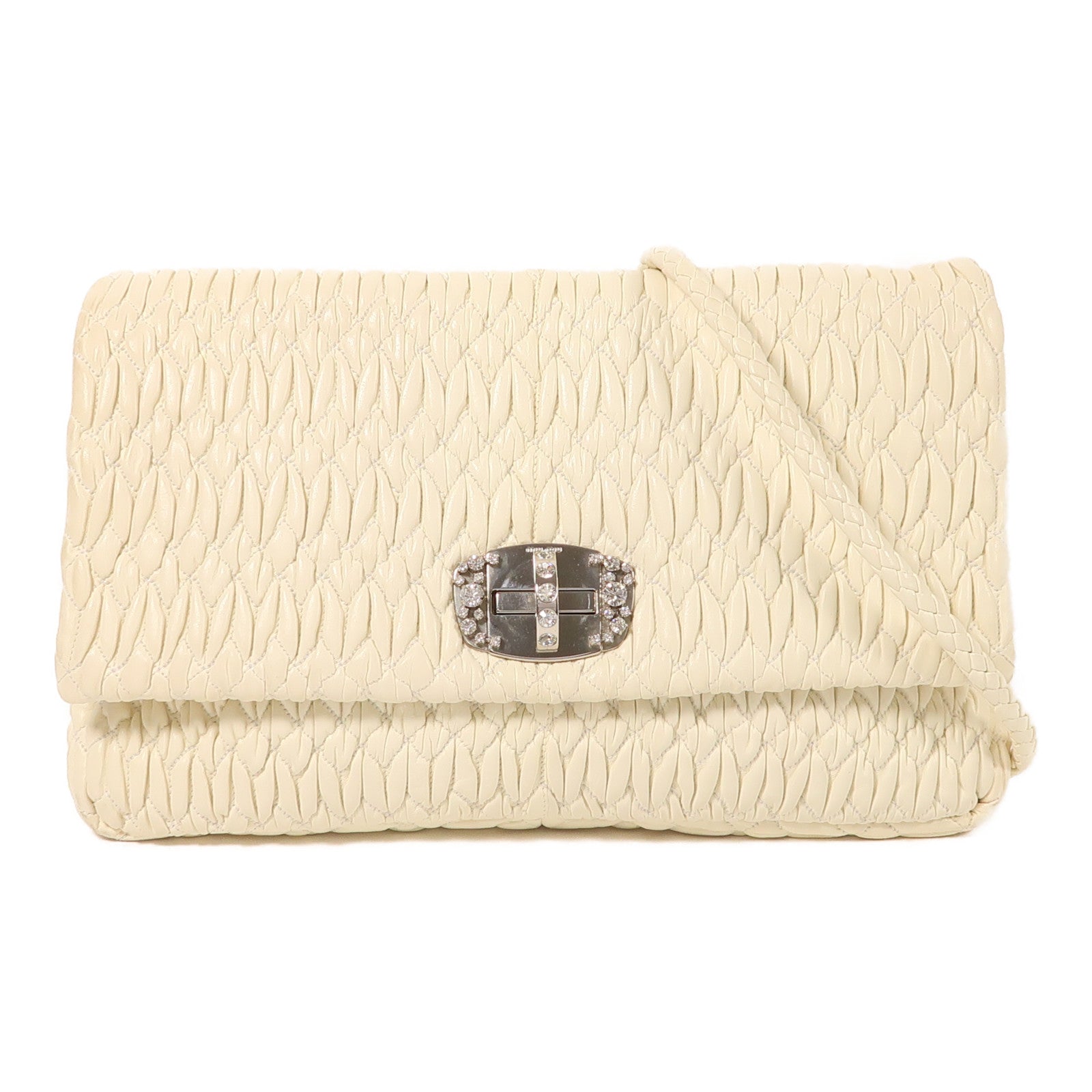 Miu Miu 牛皮皮革Matelasse Nappa Crystal銀扣肩背袋