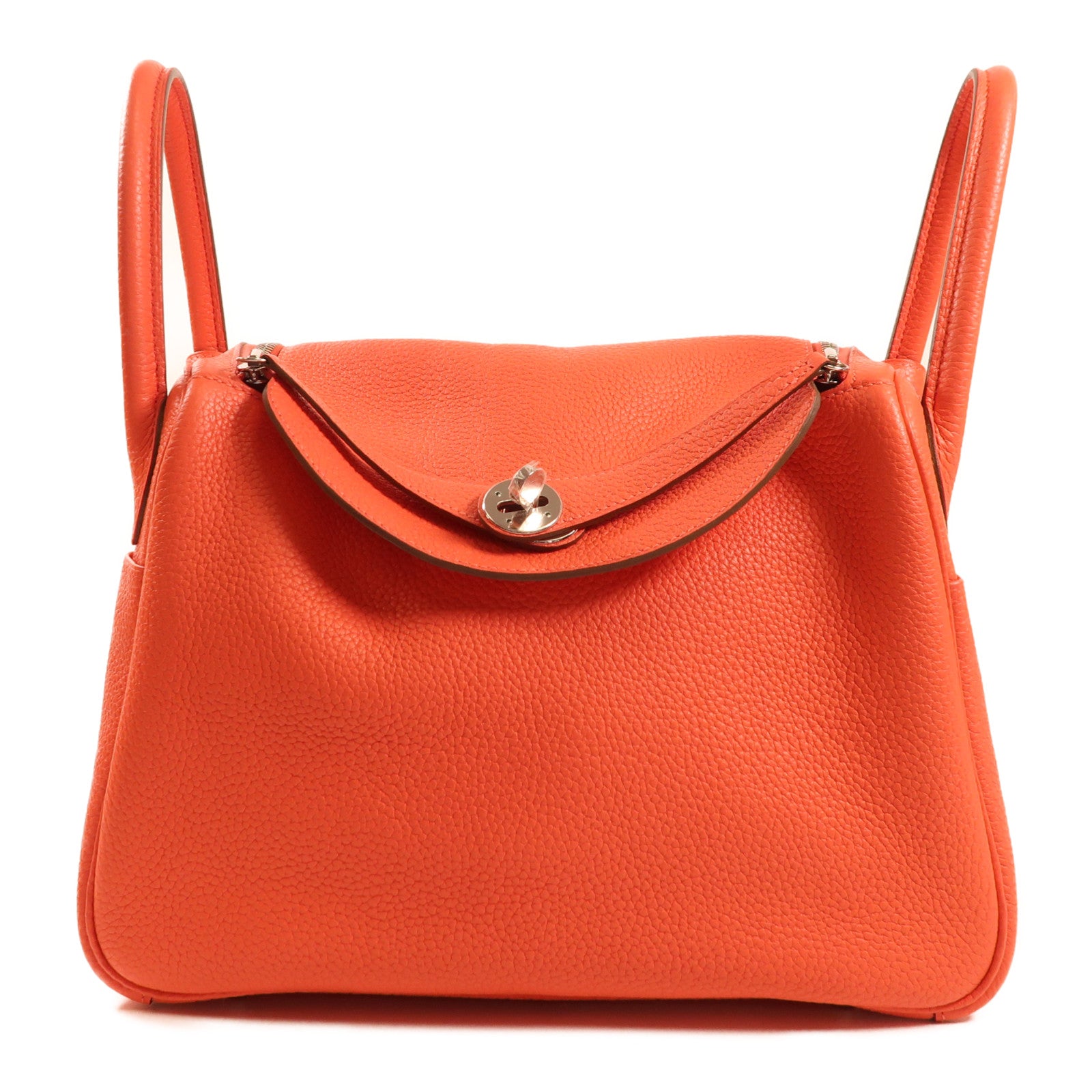 HERMES Clemence皮革Lindy 30銀扣手挽肩背兩用袋Bougainvillier紅色