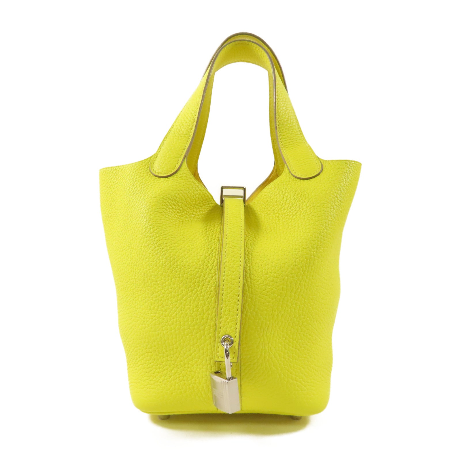 HERMES Clemence皮革Picotin PM銀扣手挽袋Lime