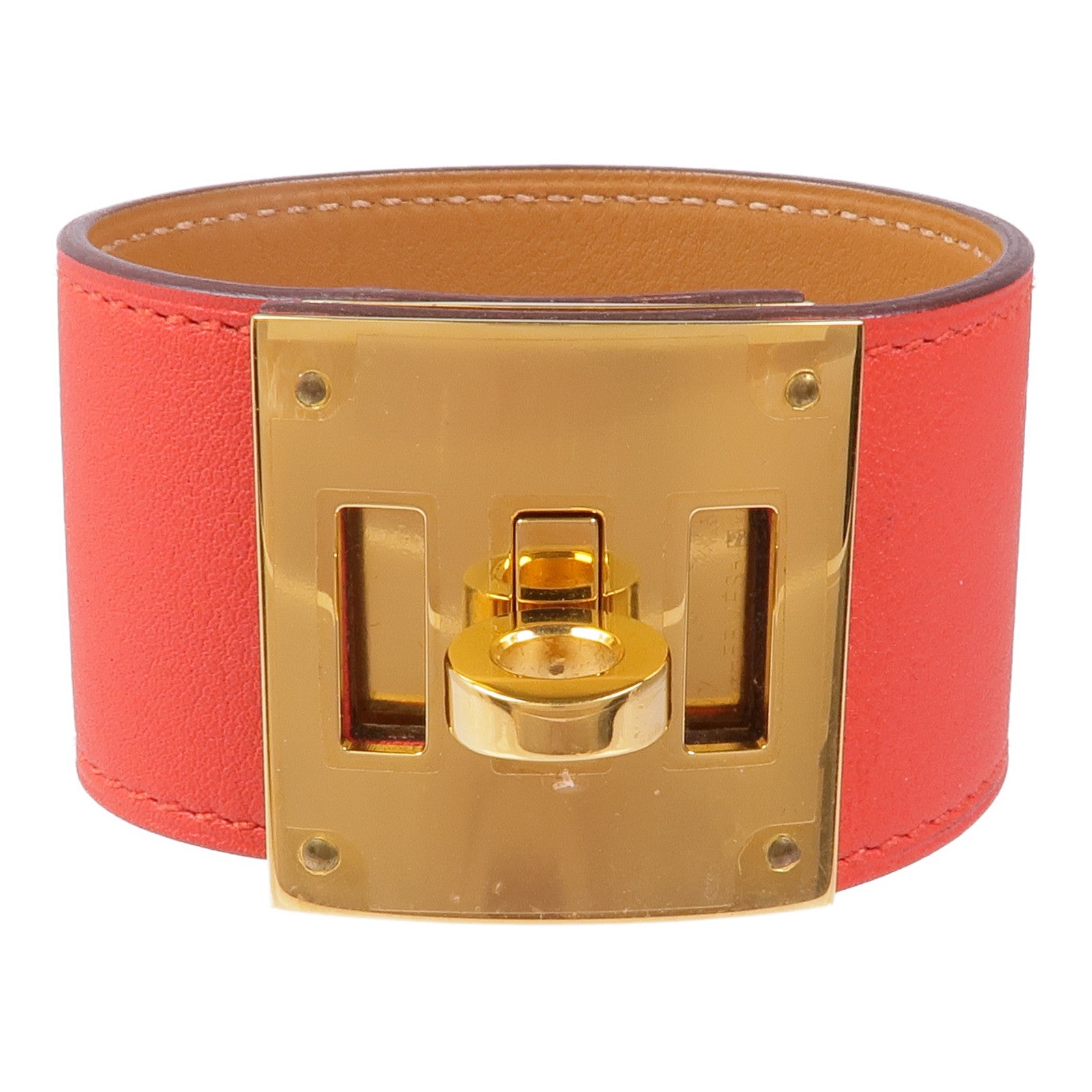 HERMES Swift皮革/金屬Kelly Dog bracelet手鏈黑色/金色